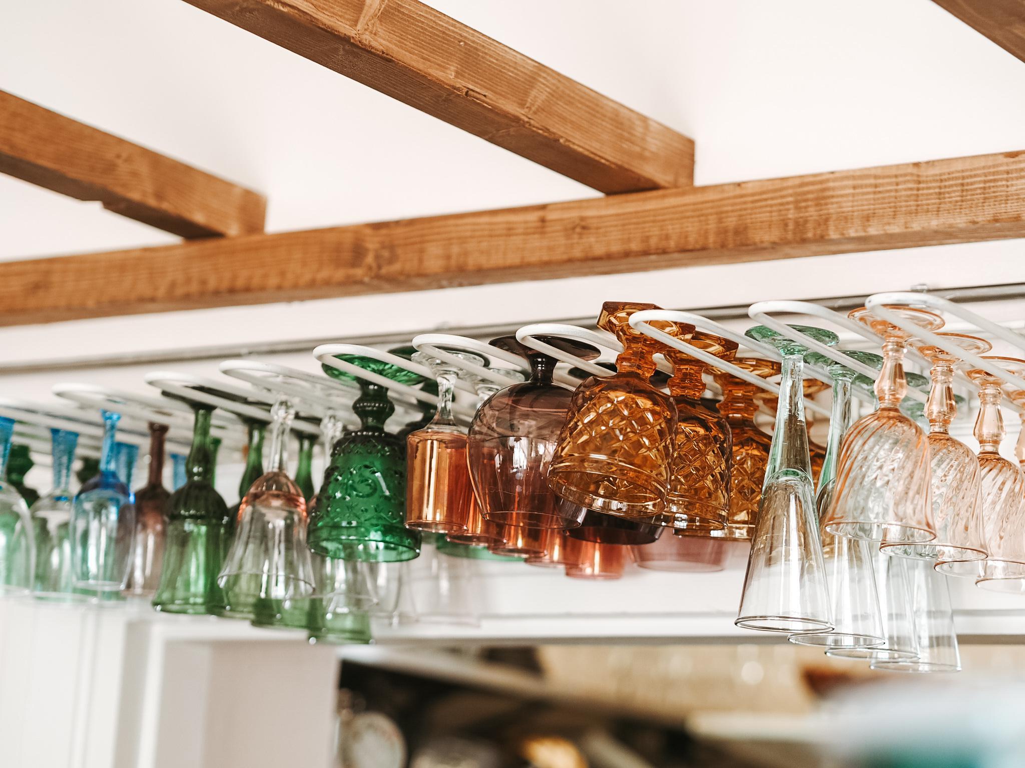 EN: Glasses hanging upside down in Kahvila Rakastan.