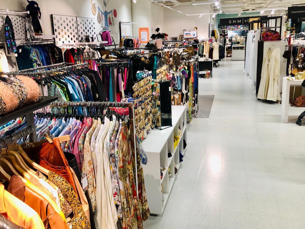 EN: SHM store, located on the thirt floor of shopping center REDI in Helsinki, is a shop that sells second hand hand products as well as products produced with recycled materials.