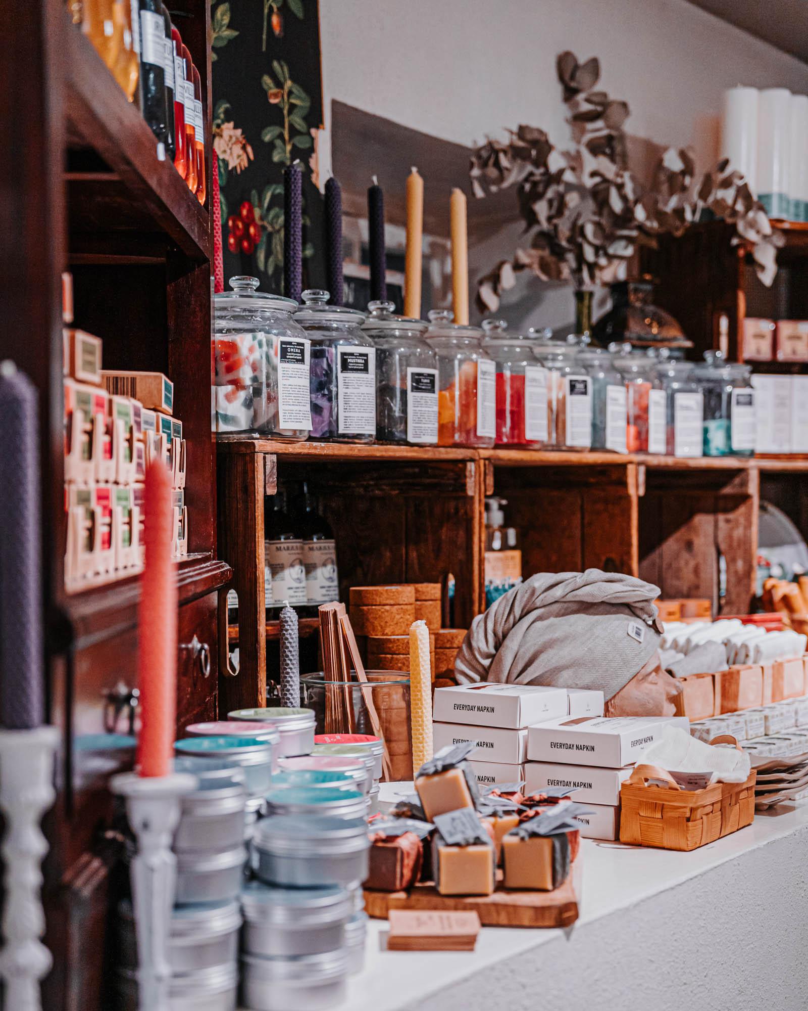 FI: Kaurilan saunan tehtaanmyymäläm tuotteita.