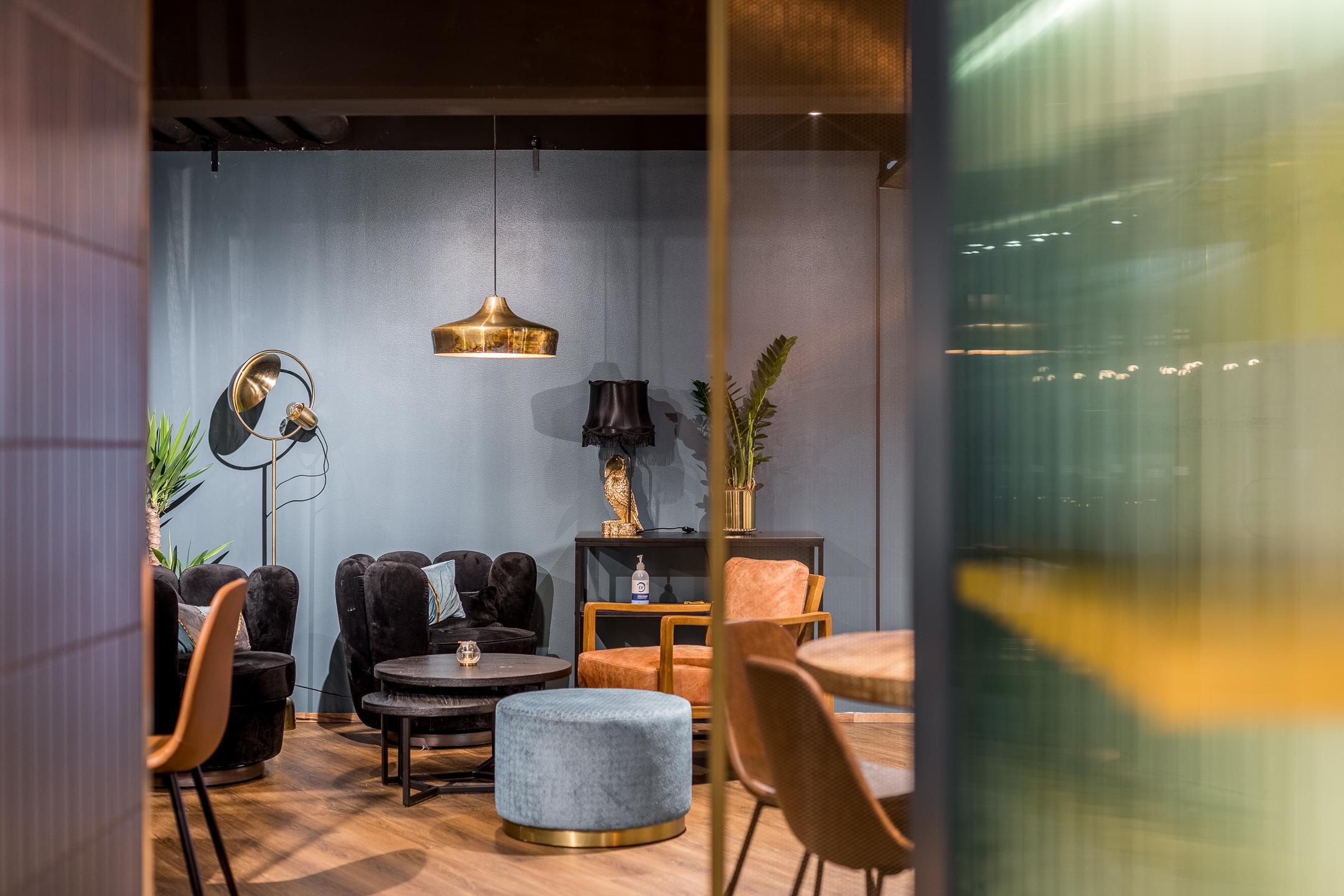 FI: Baaripöytiä ja sohvia Myöhä baarissa.