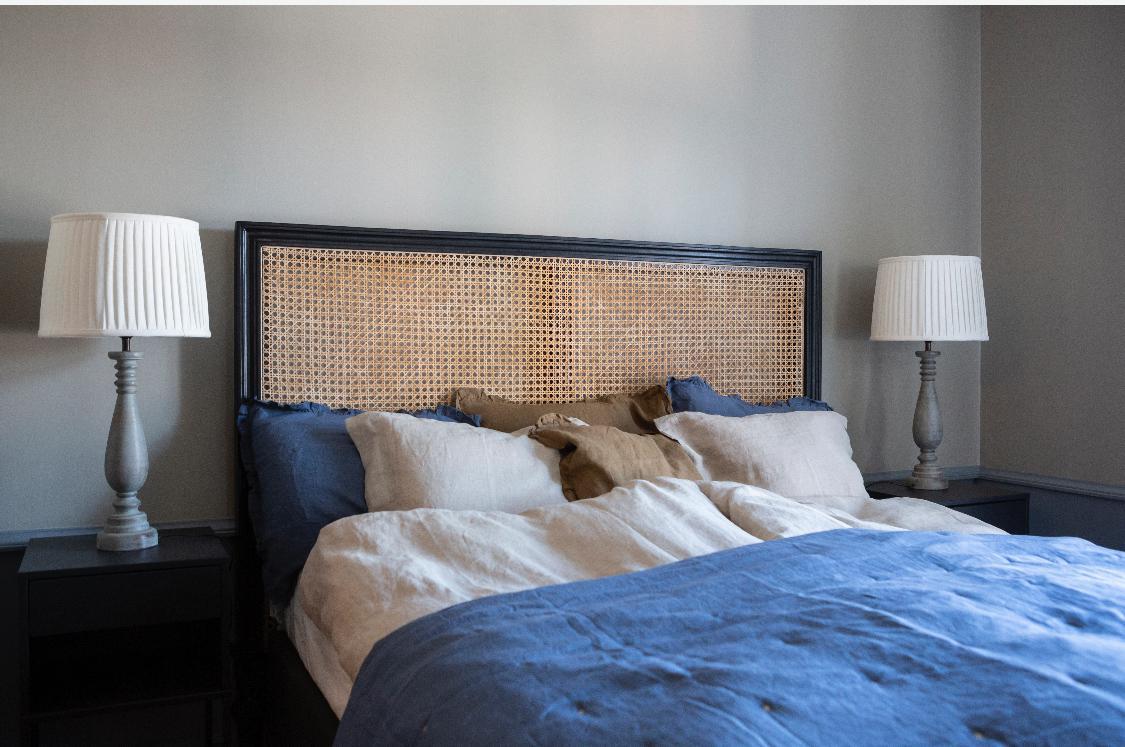 FI: Huone, jossa on sänky. Sängyn molemmilla puolilla on valkoiset valaisimet.