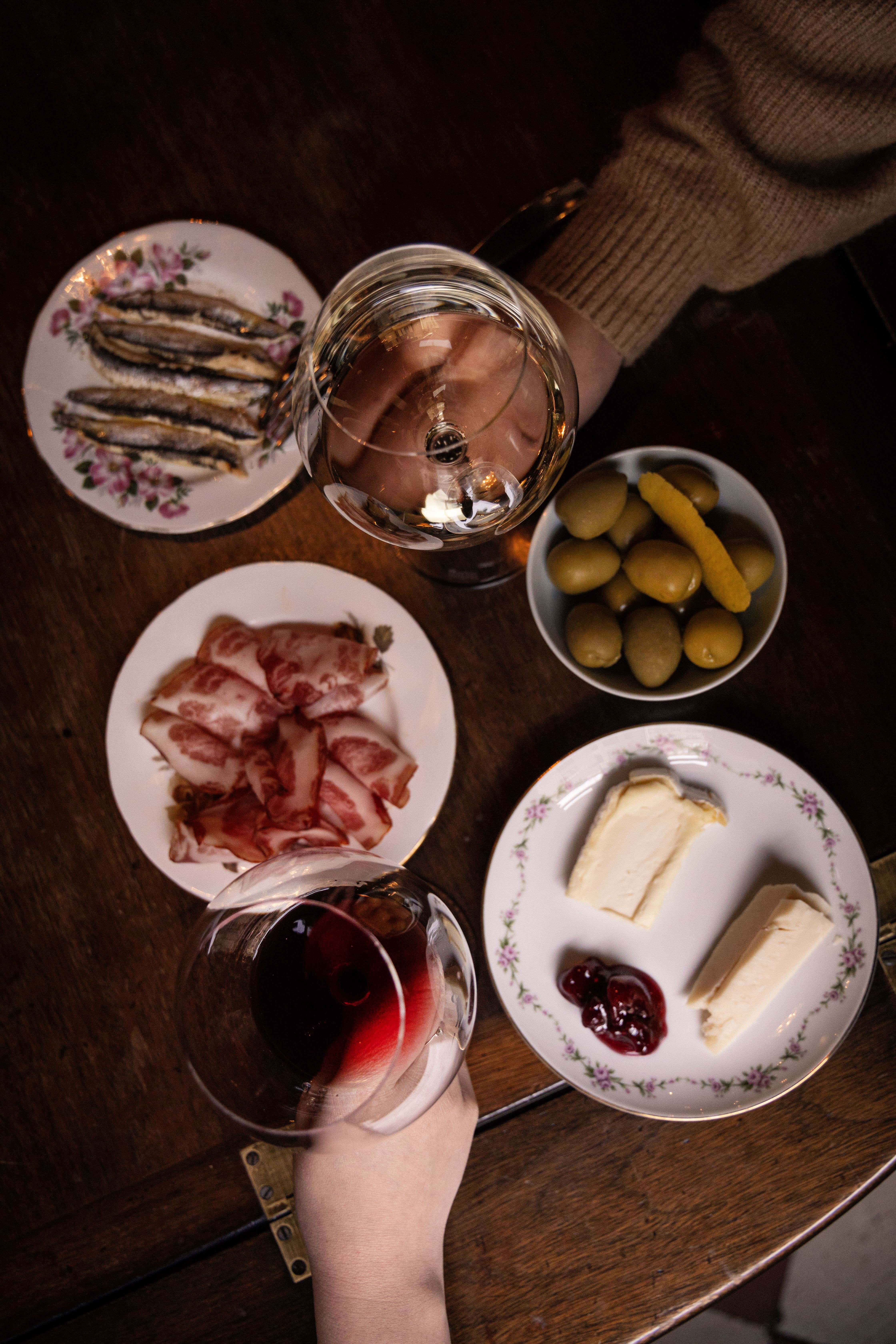 FI: Viinibaarin ruokia ja lasit viiniä