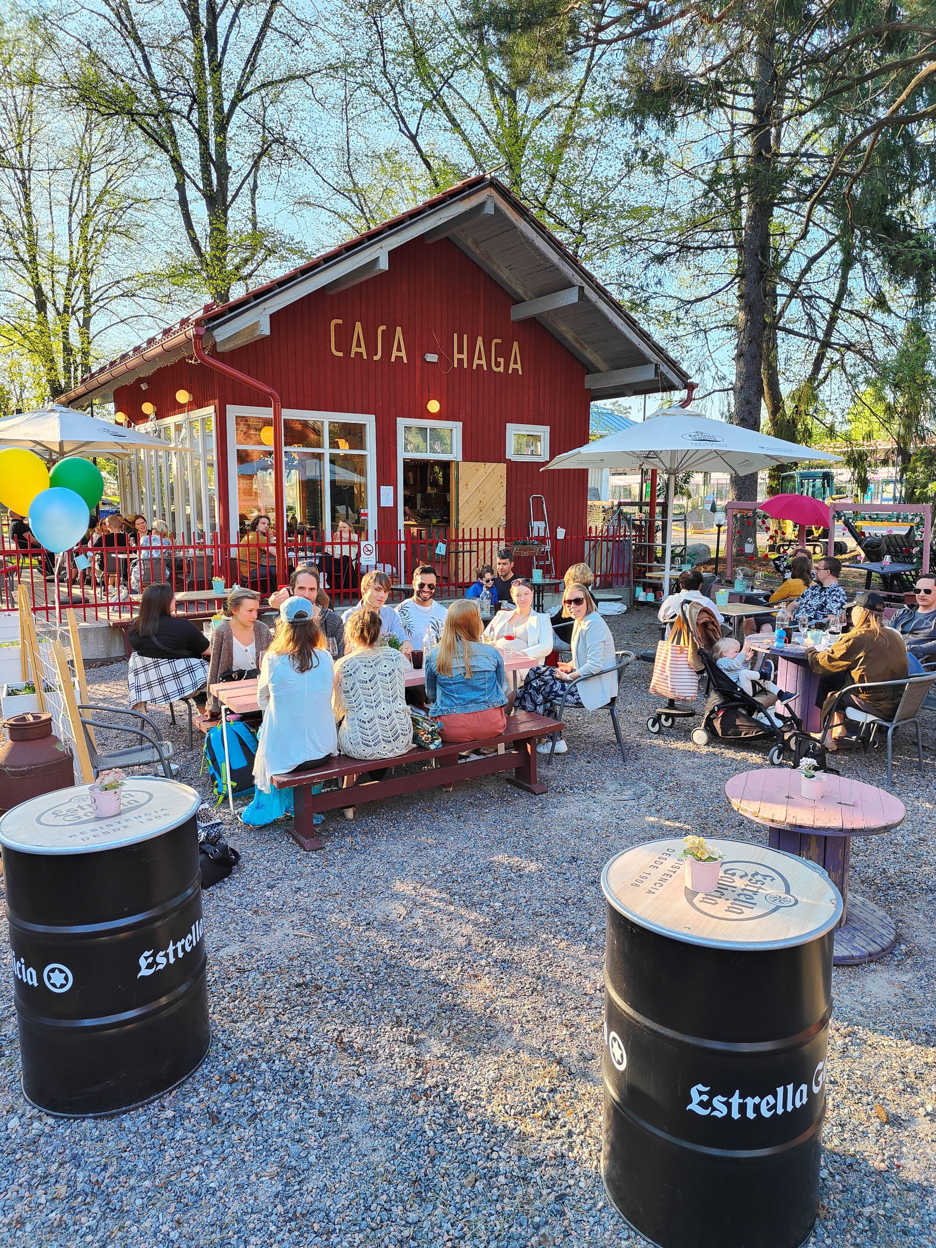 FI: Casa Haga on Huopalahden vanhan asemarakennuksen pihapiirissä sijaitseva viinikahvila.