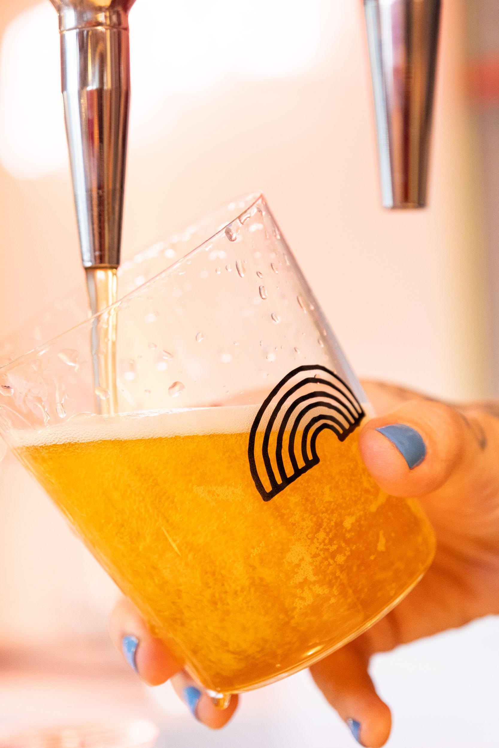 EN: A person is filling a glass under the beer tap in Lykke Helsinki.