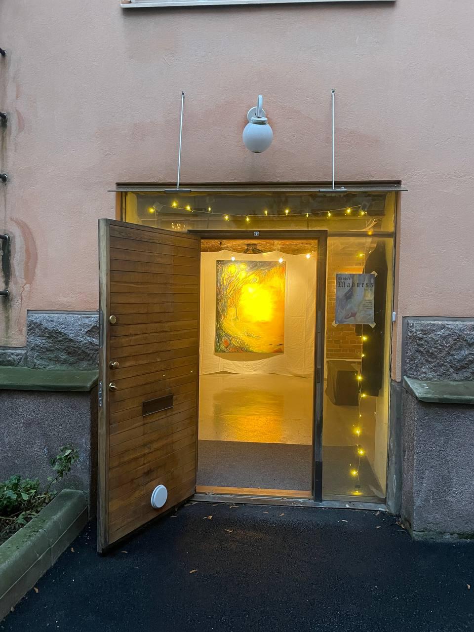 EN: The Mess is an art gallery situated and creative space situated in an art-nouveau-style building in Katajanokka. The basement served as an architecture studio, wood storage and many other usages in the past - but operations had stopped until ‘The Mess’ opened in 2024. Two sailor, Tuukka and Yasa, use the space as their creative studio, but while they are out at sea most of the year, the space hosts unique exhibitions and events. The word ‘mess’ refers to a space onboard ships where sailors spend their free time. Now it is also a space for these two sailors and their friends to spend their time off, painting and creating their creative messes.