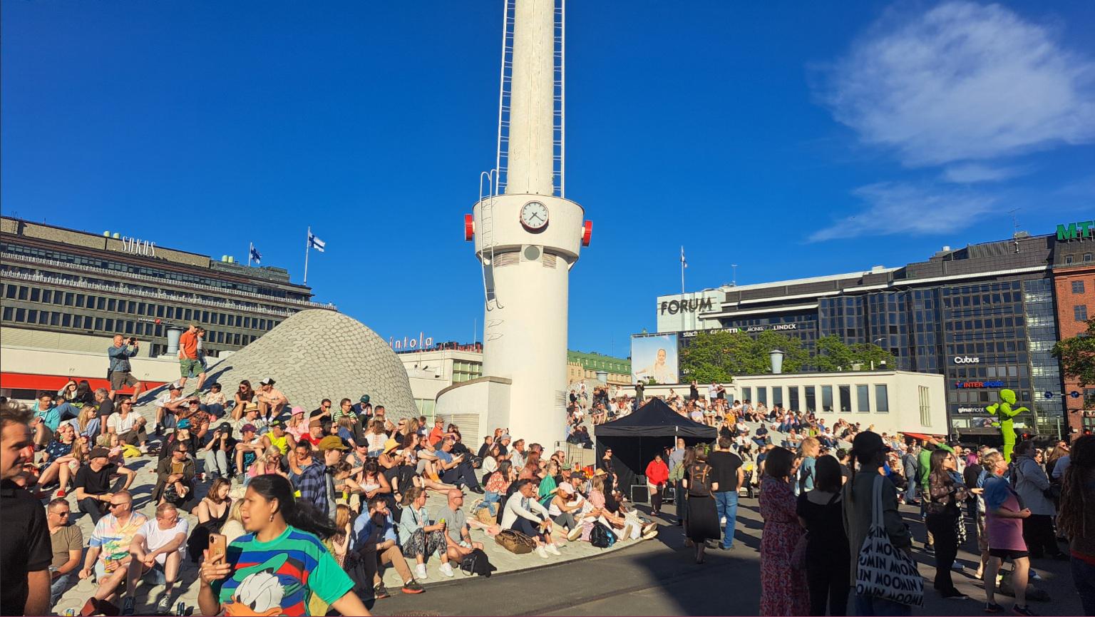 EN: Free midsummer event at Lasipalatsi square. People at the square.