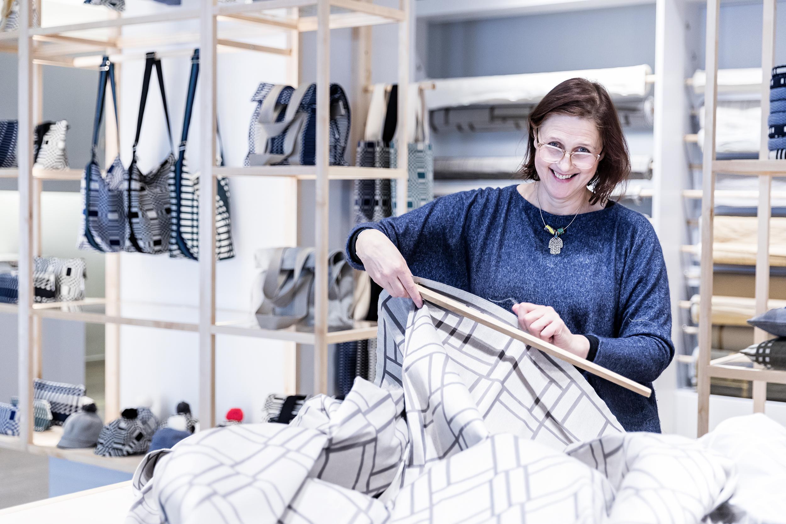FI: Johanna Gullichsen Design tarjoaa laajan valikoiman kudottuja tekstiilejä kotiin sekä kauniin valikoiman laukkuja ja asusteita.