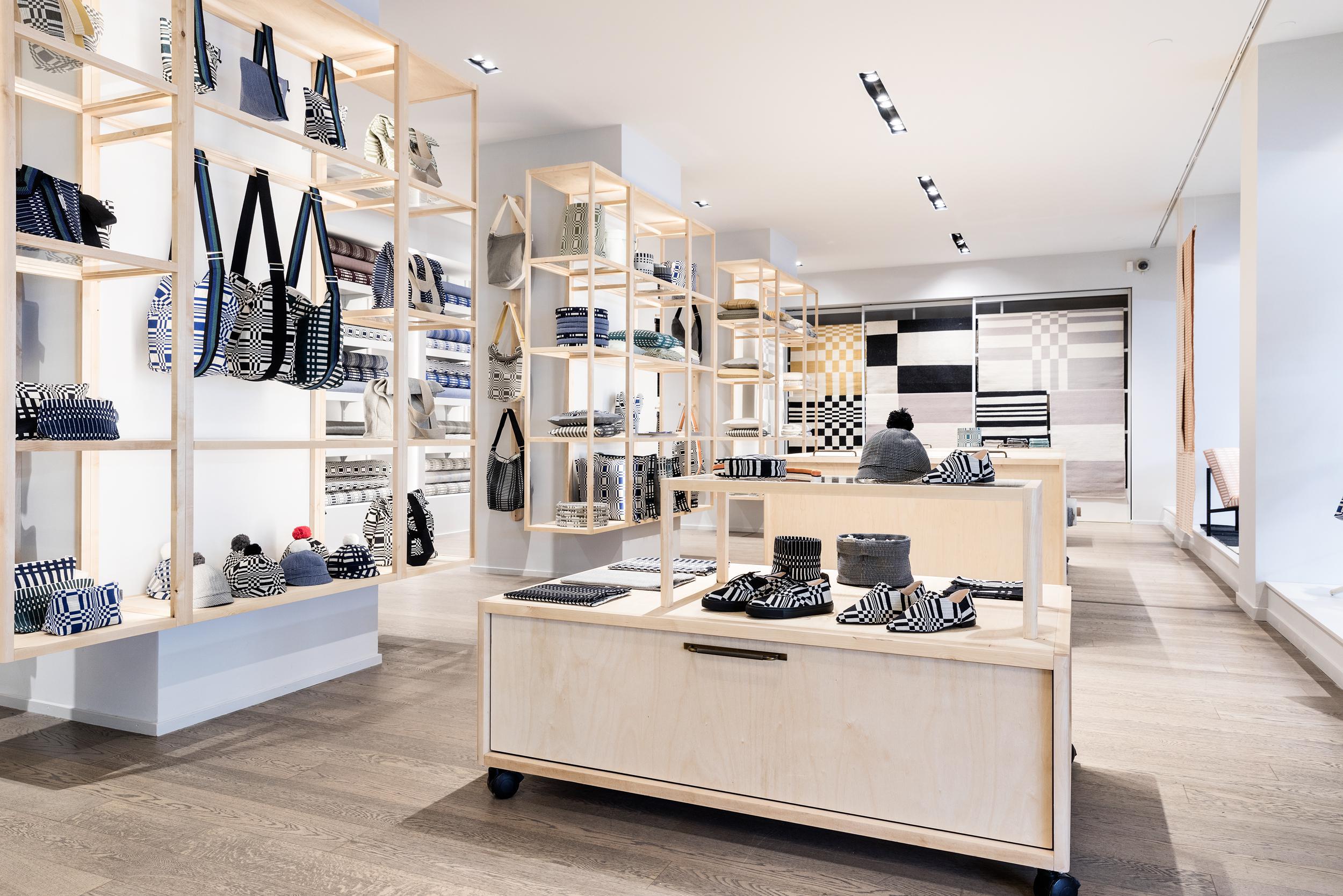 FI: Johanna Gullichsen myymälä, jossa on esillä myymälän tuotteita.