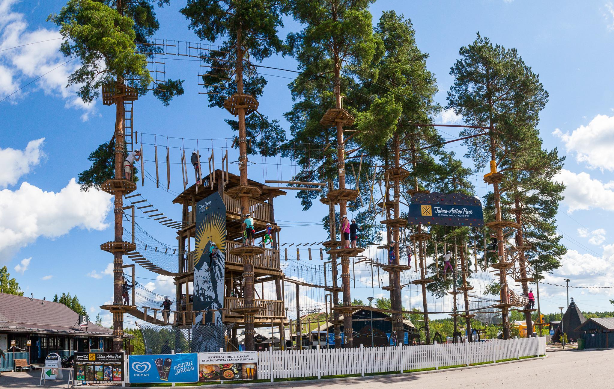 FI: Talma Active Park. Puita, joissa on kiipeilyrata.