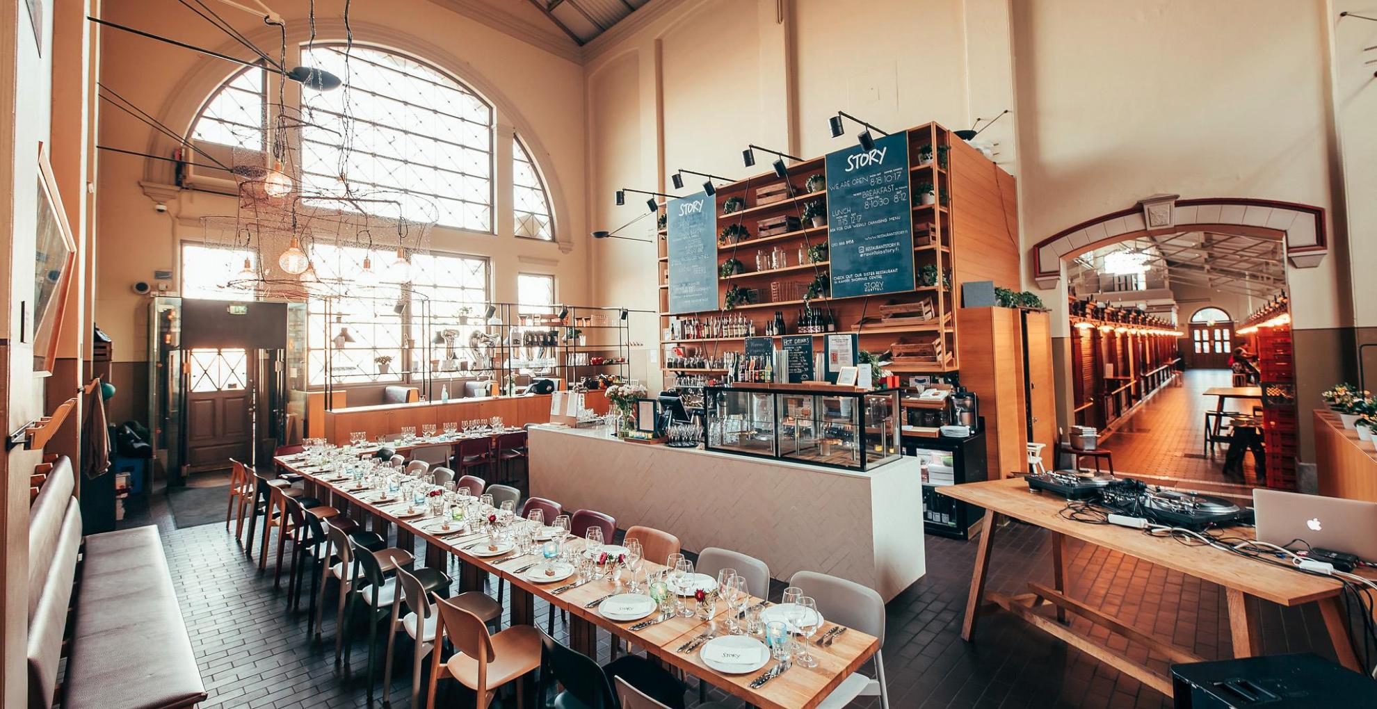 FI: Story on kahvila-ravintola Vanhassa Kauppahallin keskiössä, jossa tarjotaan mutkatonta halliruokaa, pientilaviinejä, kahvila- ja konditoriatuotteita sekä aamiaista ja brunssia.