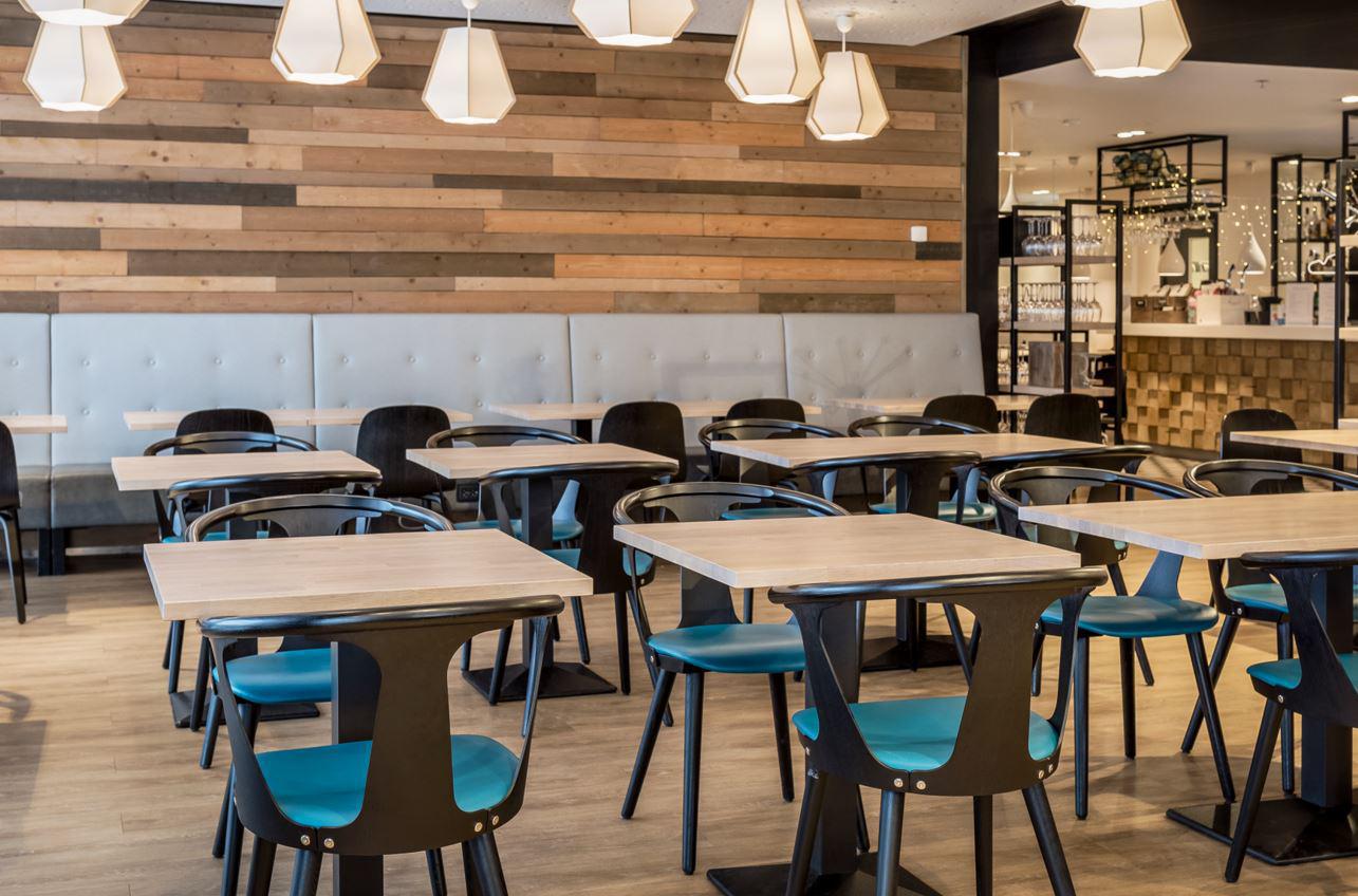 FI: Scandic Meilahti hotellin ravintolasali, pöytiä ja tuoleja.