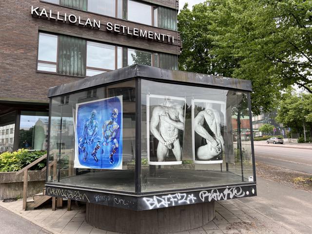 EN: At the corner of Kalliola setlmenettitalo, in the corner of Sturenkatu and KIrstinkatu, there is a glass cube called Mutteri, which works as a street gallery.