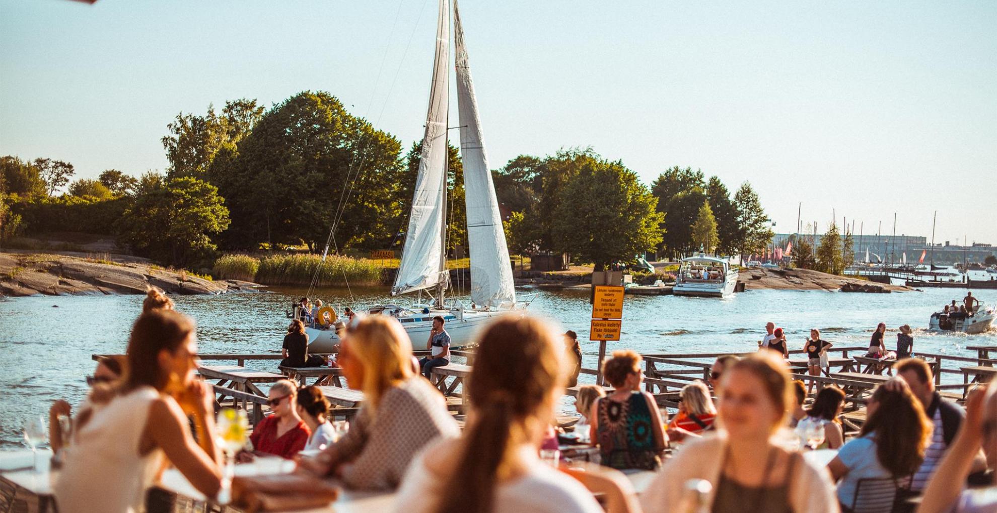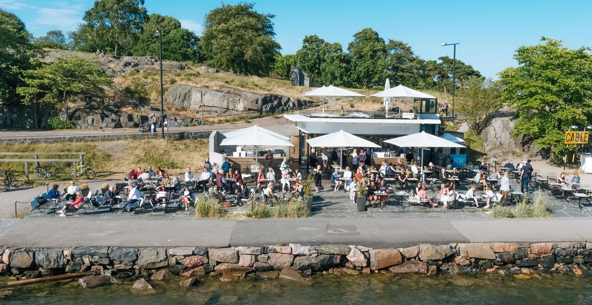 EN: Mattolaituri is a sea-side restaurant on the shore of Kaivopuisto. It is possible to admire the magnificent sea views from either the restaurant's own sandy beach while sitting on a beach chair or relaxing on the upstairs lounge sofas. The restaurant offers eg. ice cream, summer drinks and snacks. At weekends, DJs play and entertain the guests.