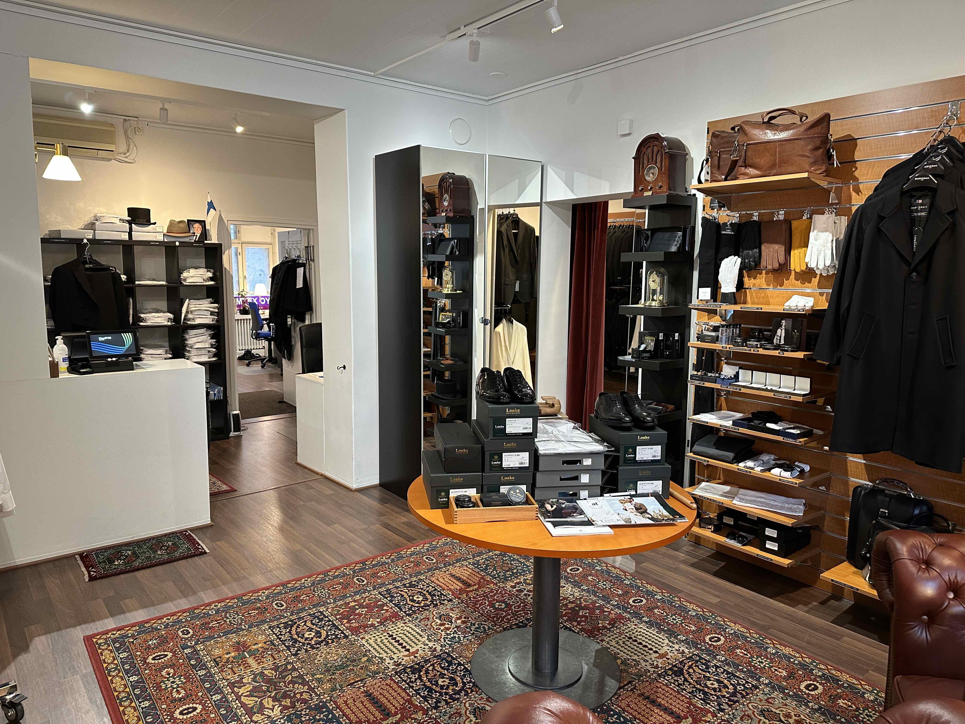 EN: Charlston is a a Finnish shop specialized in tailcoats, tuxedos, and suits, located on Museokatu. The store offers a large selection of tailcoats, tuxedos, and suits in various sizes, as well as accessories to go with them.