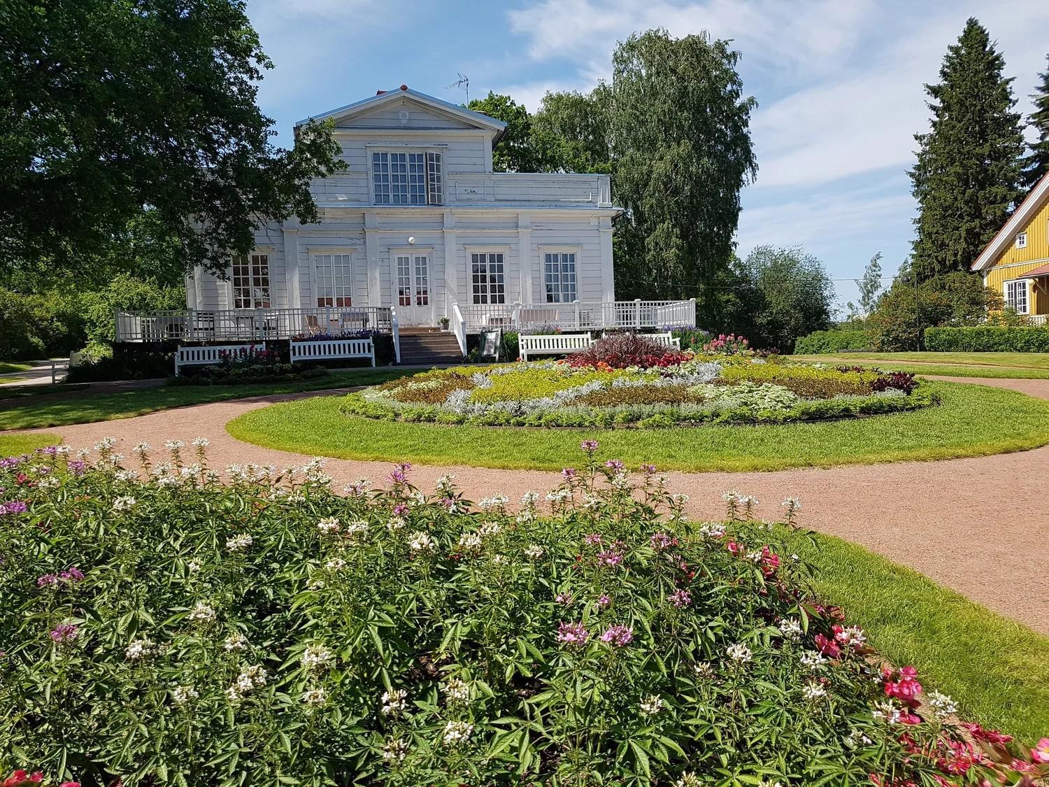 EN: Annala Villa in the summer. In addition to the villa, the area features an impressive garden and excellent outdoor recreation