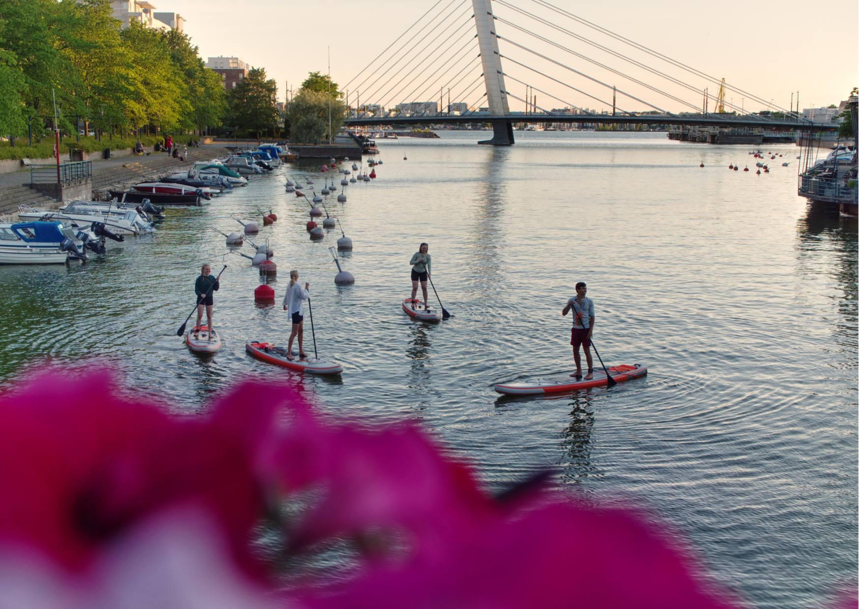 Stand up paddle boarding is an easy and fun way to spend a relaxed summer day or improve your fitness level. Laguuni offers SUP courses, trips, yoga and SUP polo.