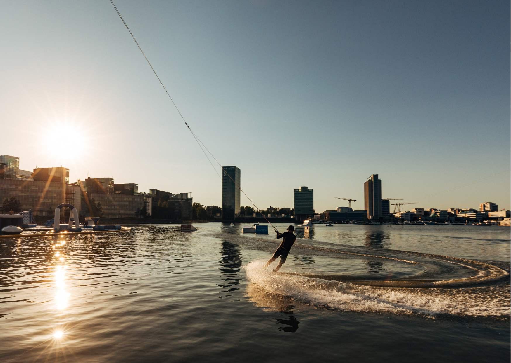 EN: Laguuni is a floating oasis for various watersports. You can, for example, try wakeboarding and kayaking or just hang out, eat and take a sauna.