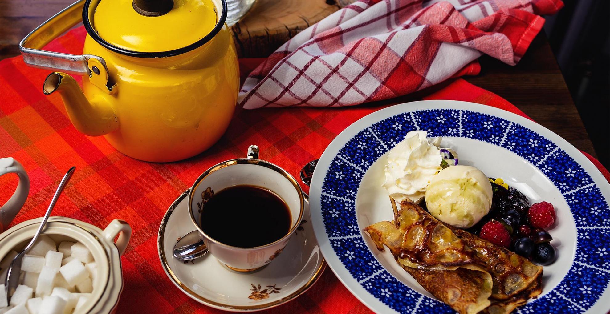 EN: Finnish restaurant Savotta's kitchen cherishes Finnish food tradition, serving also vegan dishes. The interior decoration is inspired by a dash of Finnish nostalgy from the past decades and logging and forestry traditions.