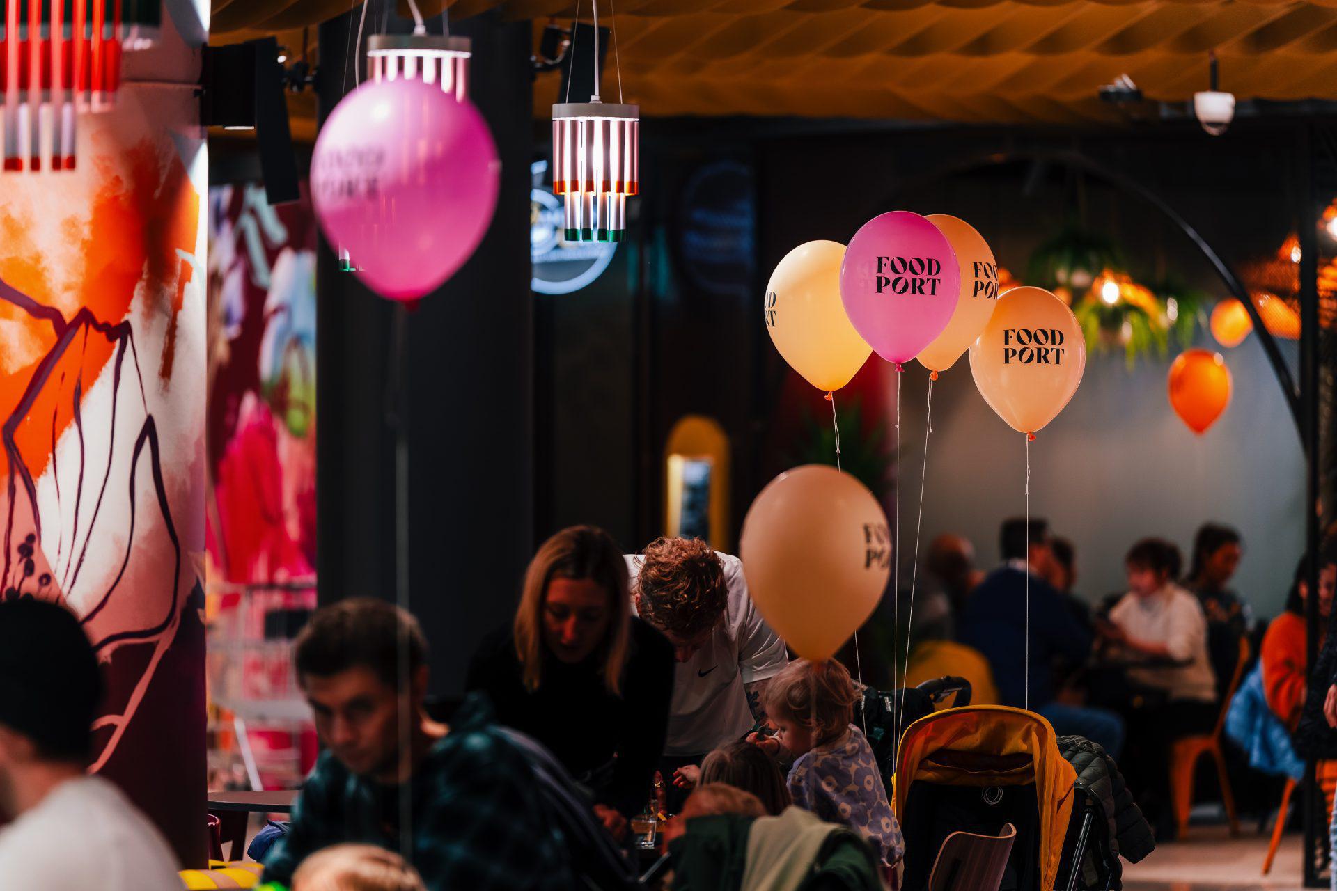 FI: Ihmisiä syömässä REDIn ravintola-alueella.