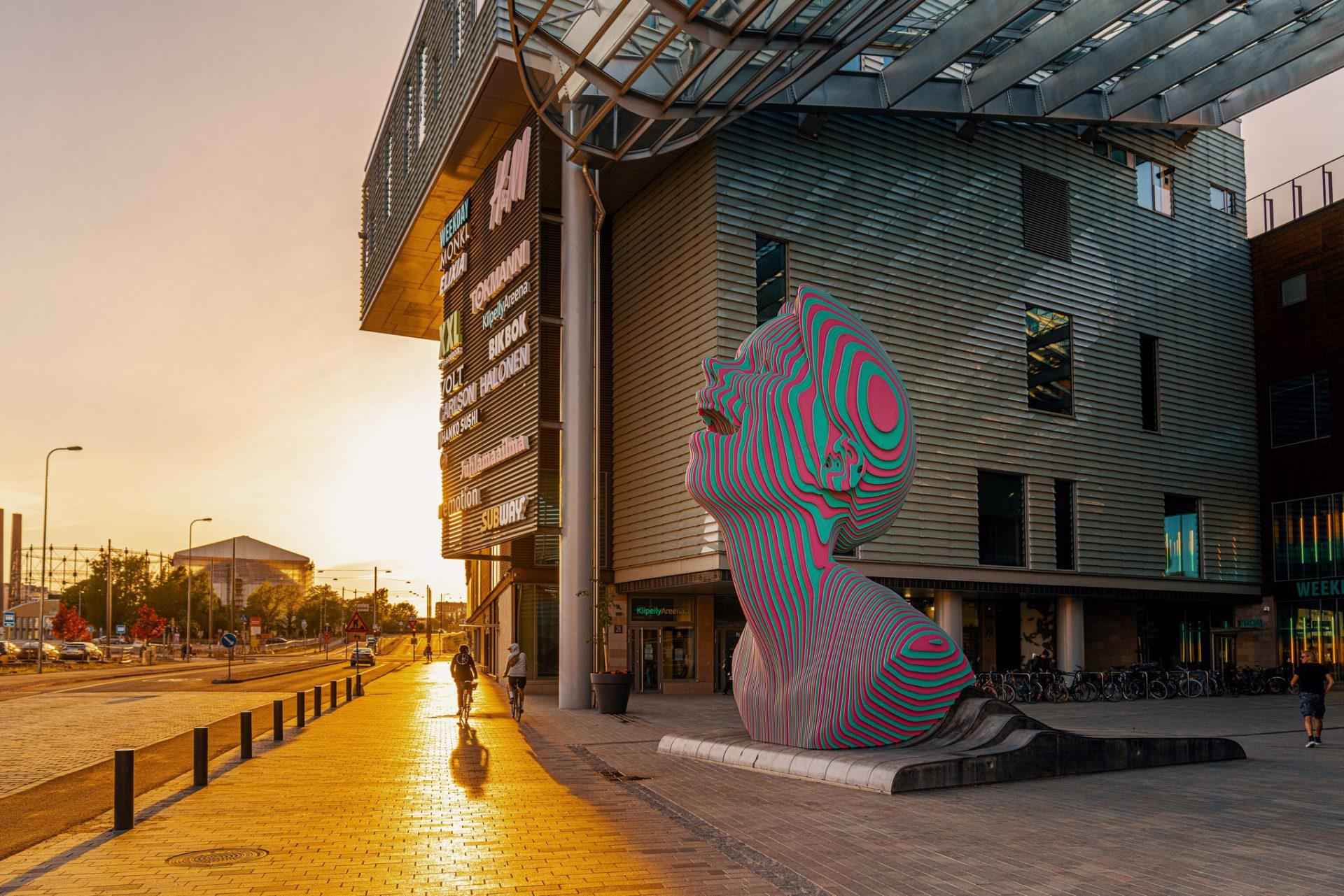 FI: Kauppakeskus Redin ulkopuoli auringonlaskussa.