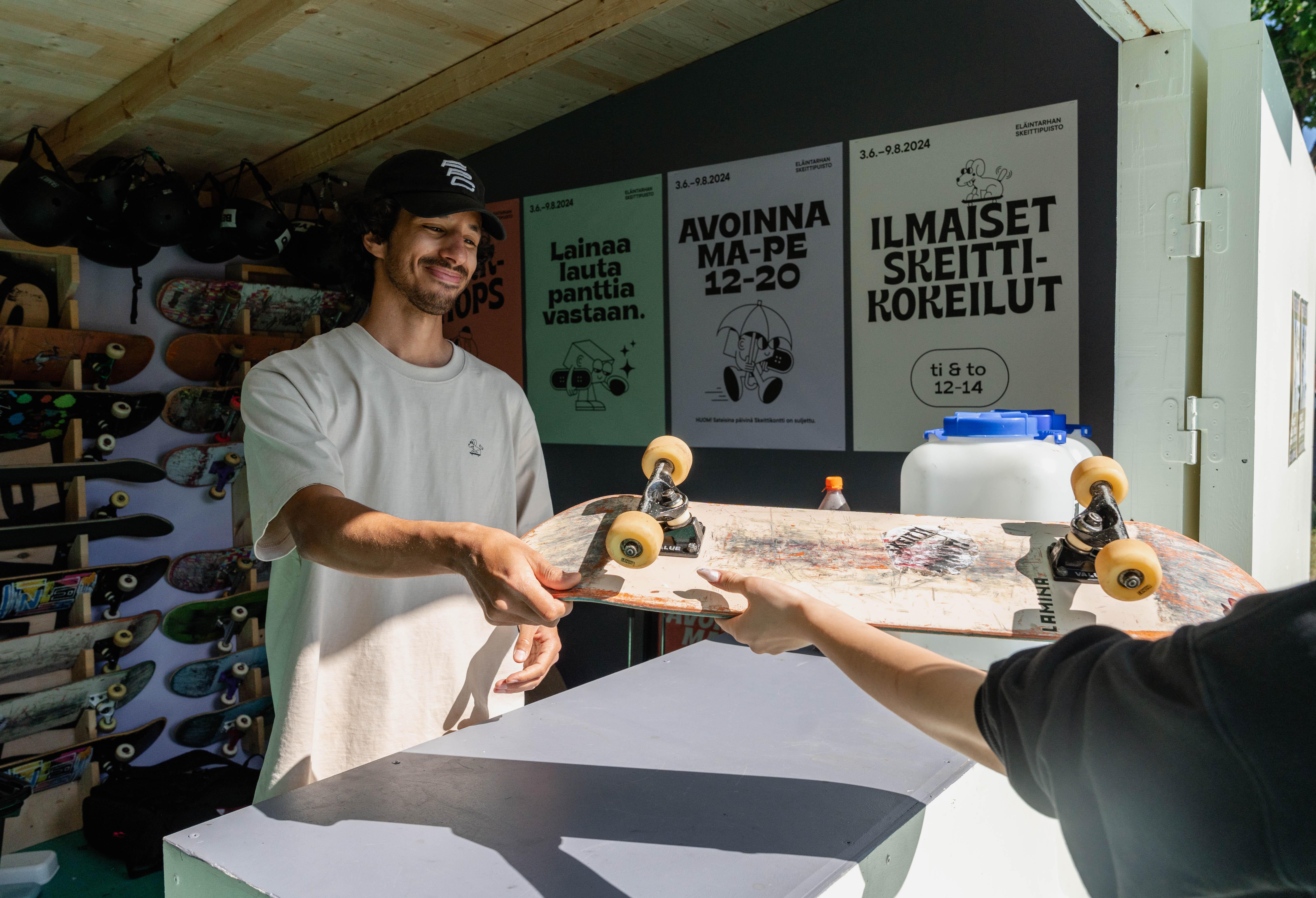 FI: Skeittikontilla toimii ilmainen lauta- ja suojalainaamo