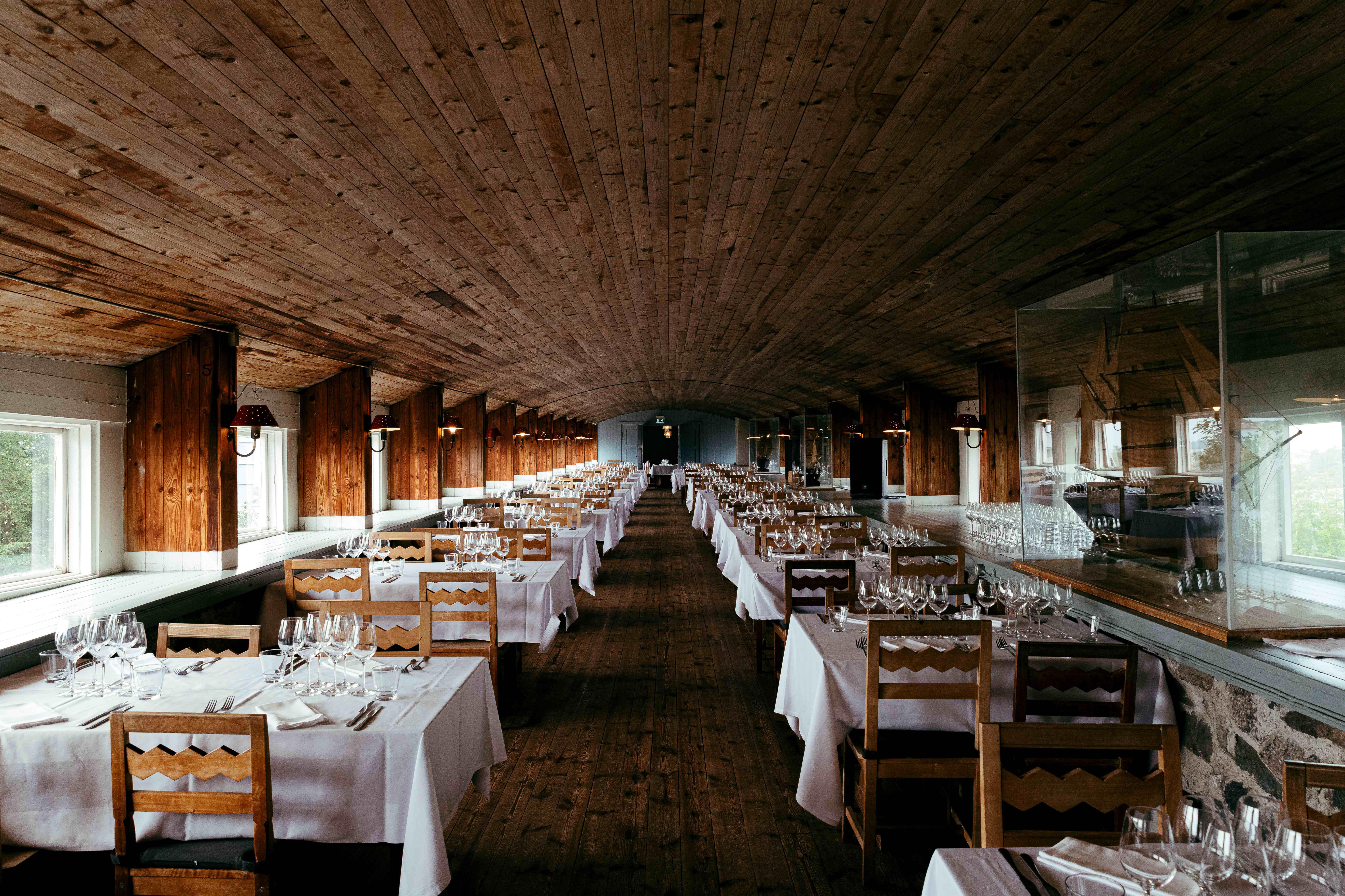 SV: Restaurang Särkänlinnas restaurangsal. Dukade bord.