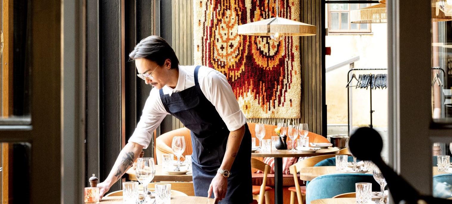 SV: Brasa restaurangens interiör. En person vid bordet.