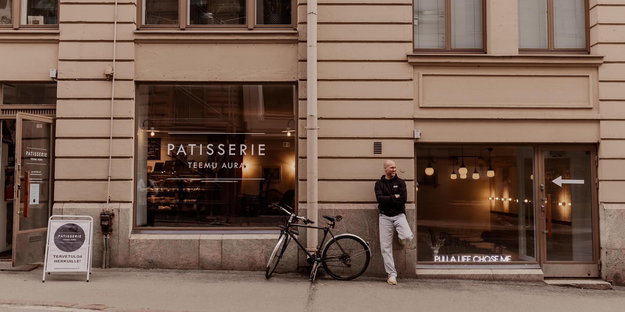 FI: Patisserie Teemu Aura on Punavuoren sydämessä, Fredrikinkadulla, sijaitseva leipomo-konditoria.