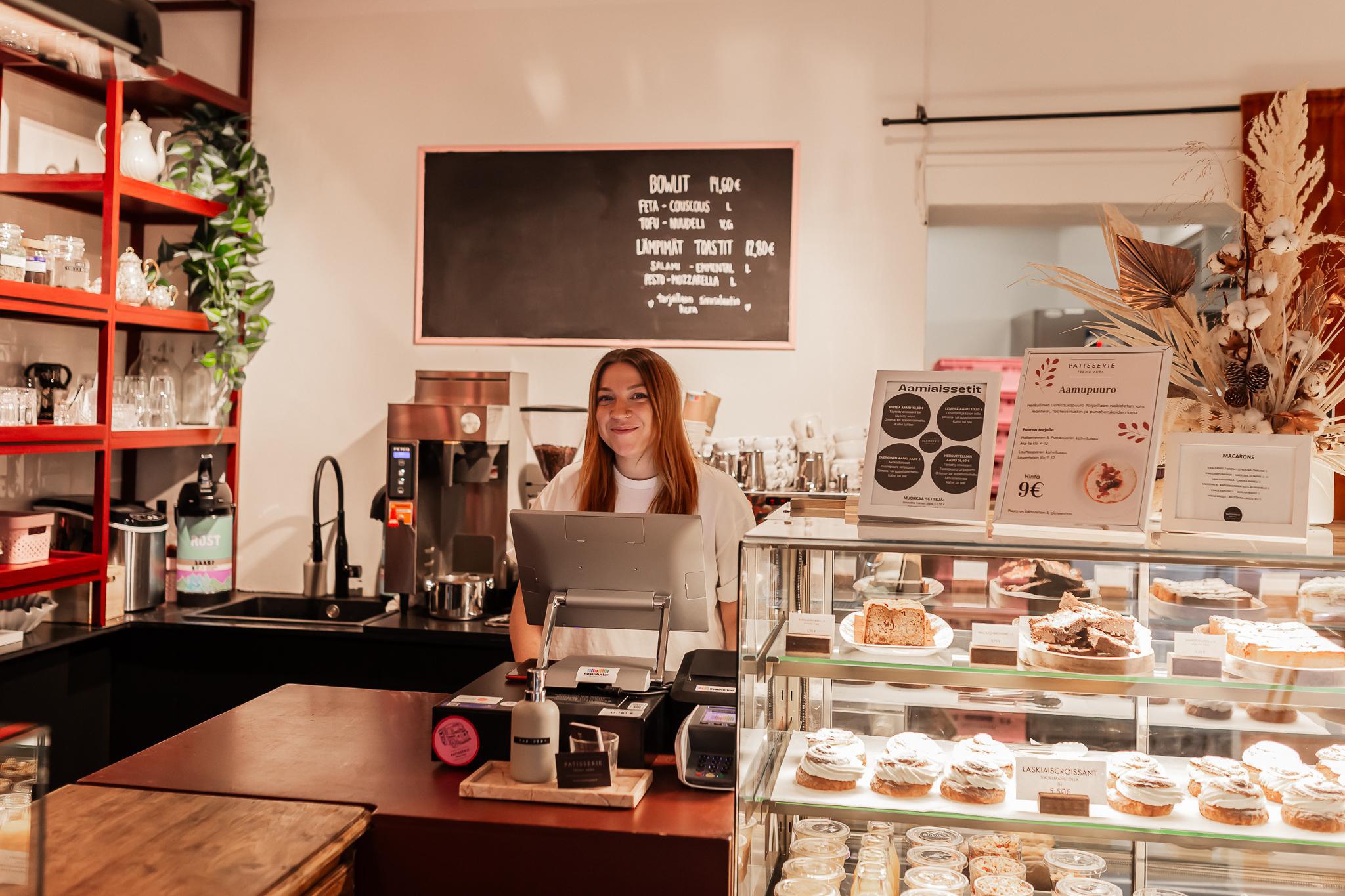 FI: Kuva kahvilan työntekijästä tiskin takana.