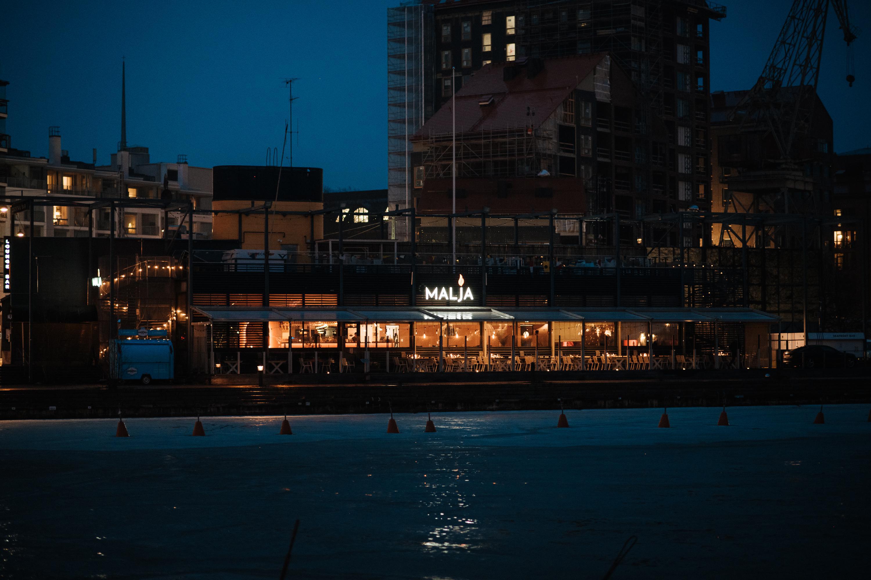 SV: Malja är en varm och välkomnande cocktail bar vid Sandvikskajen i Helsingfors.