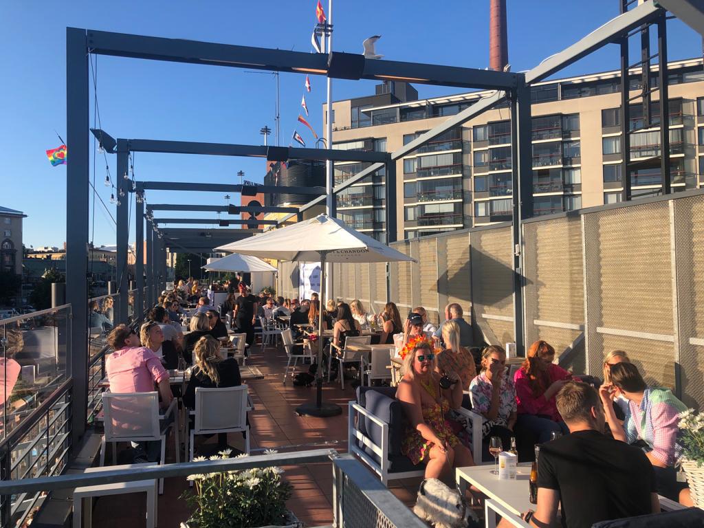 FI: Ihmisiä Maljan terassilla.