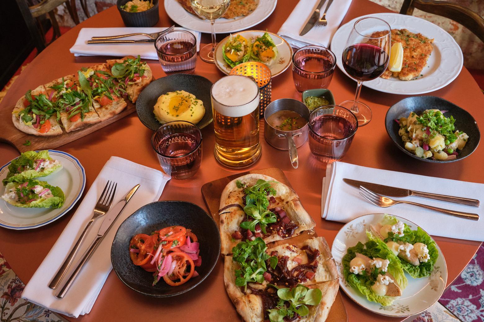 The restaurant serves a variety of Schnitzels, made from pork, veal, chicken, fish and even vegan. Side dishes and sauces can be selected according to your own taste. The restaurant serves also Flammkuchens, and for dessert you can enjoy freshly baked sourdough waffles.