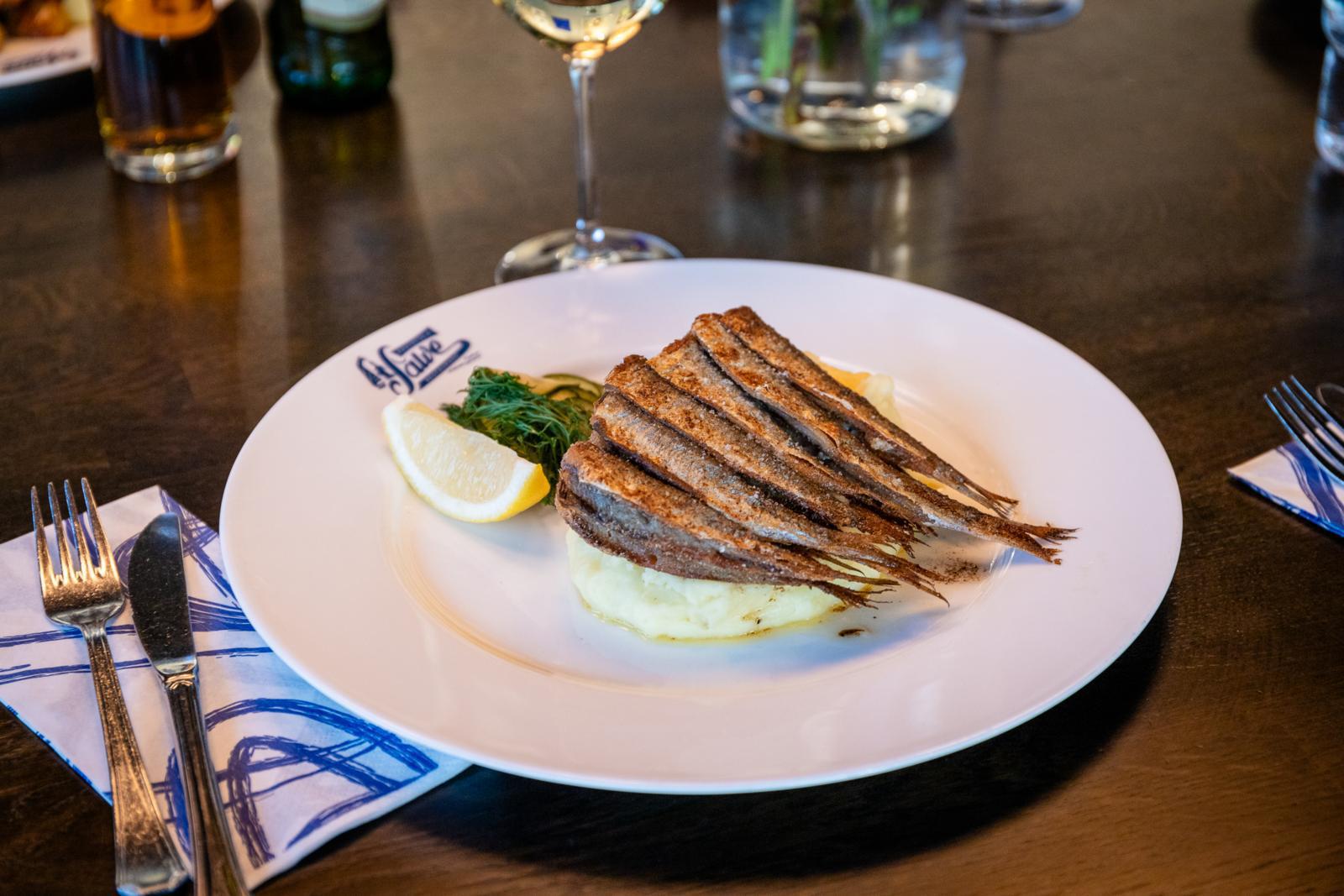 SV: Salves strömmingsrätt på en vit tallrik.