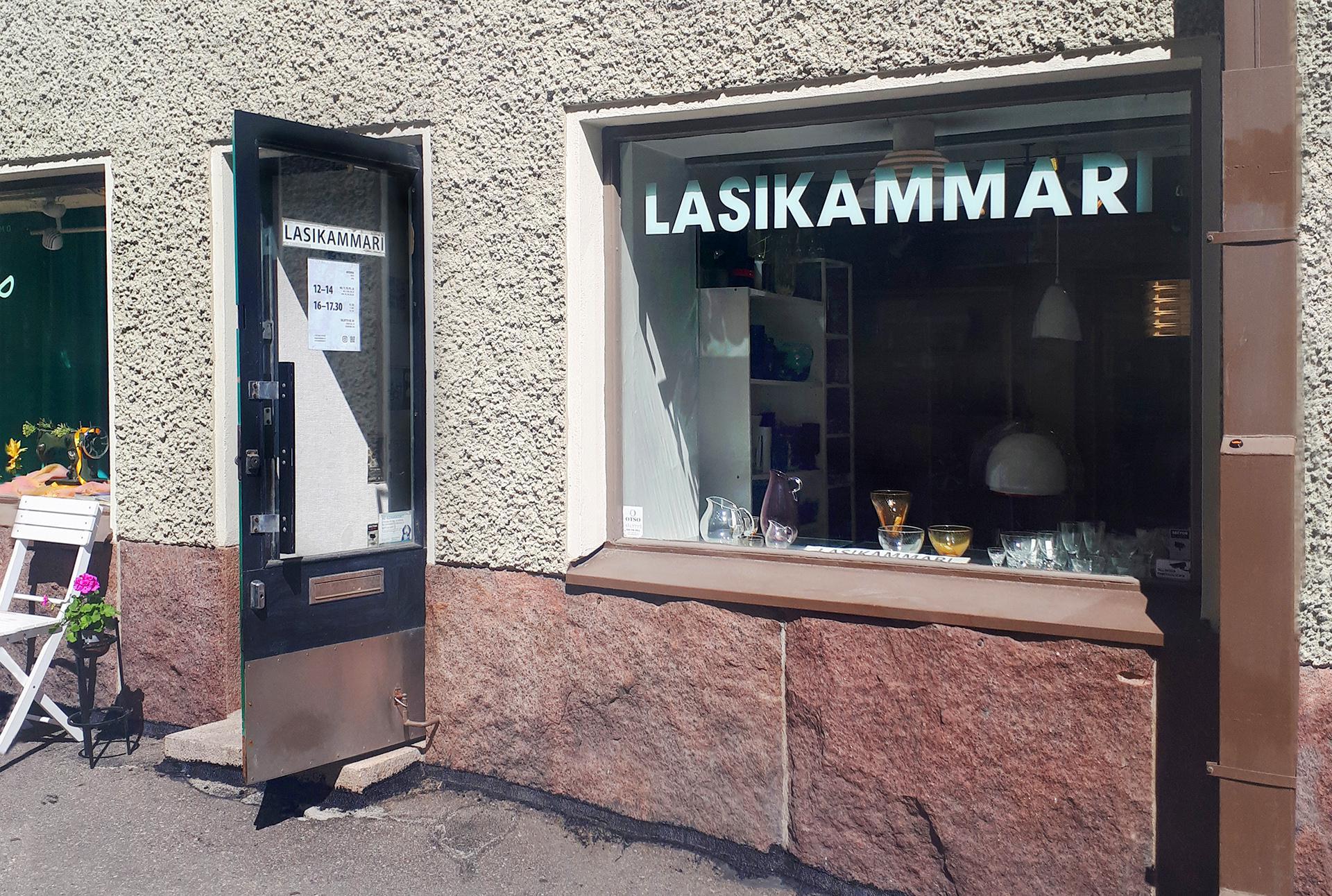 EN: Lasikammari, located in Kruununhaka, buys and sells Finnish glass design from tableware to art glass, from the 1950's to today.
