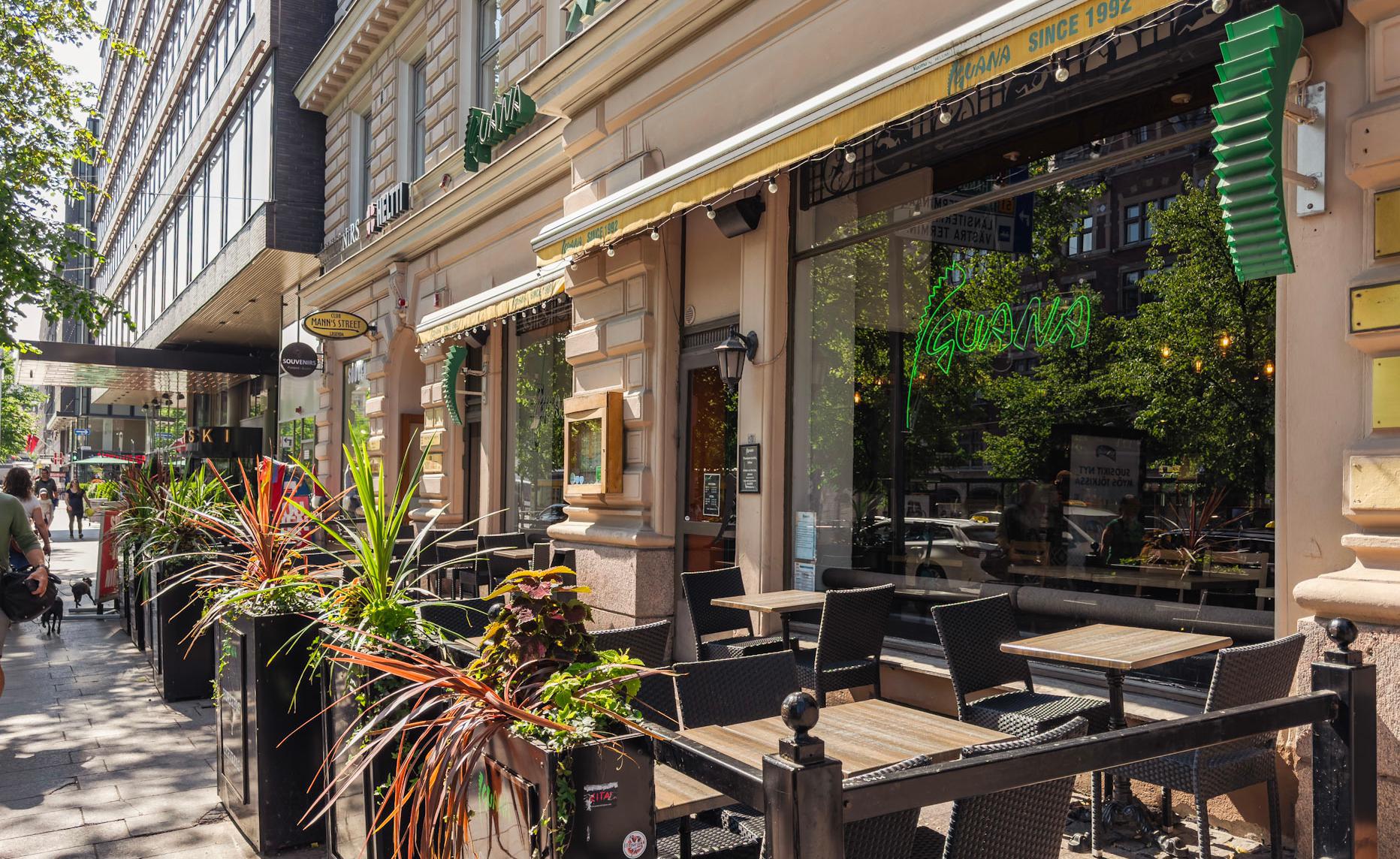 FI: Iguana Mannerheimintien viihtyisä terassi kaupungin keskeisellä sijainnilla.