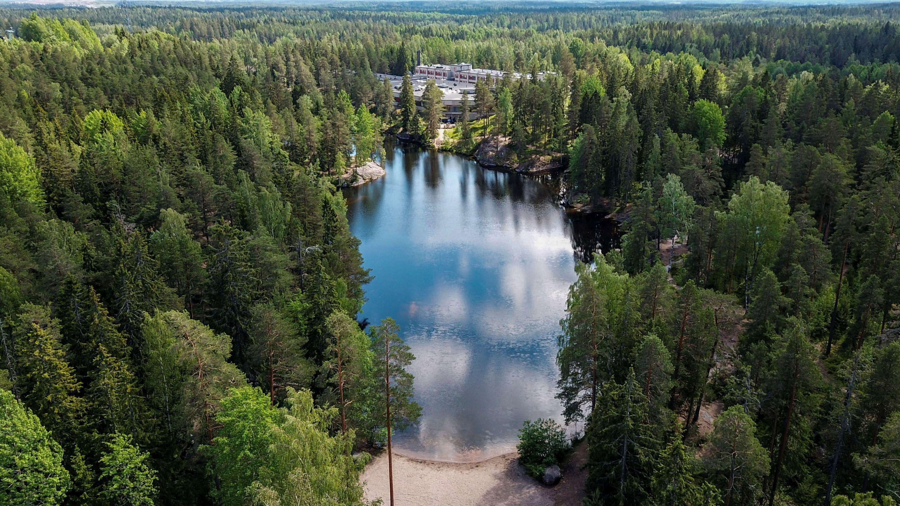 SV: Hotell Korpilampi i Esbo. En damm, omringad av skog.