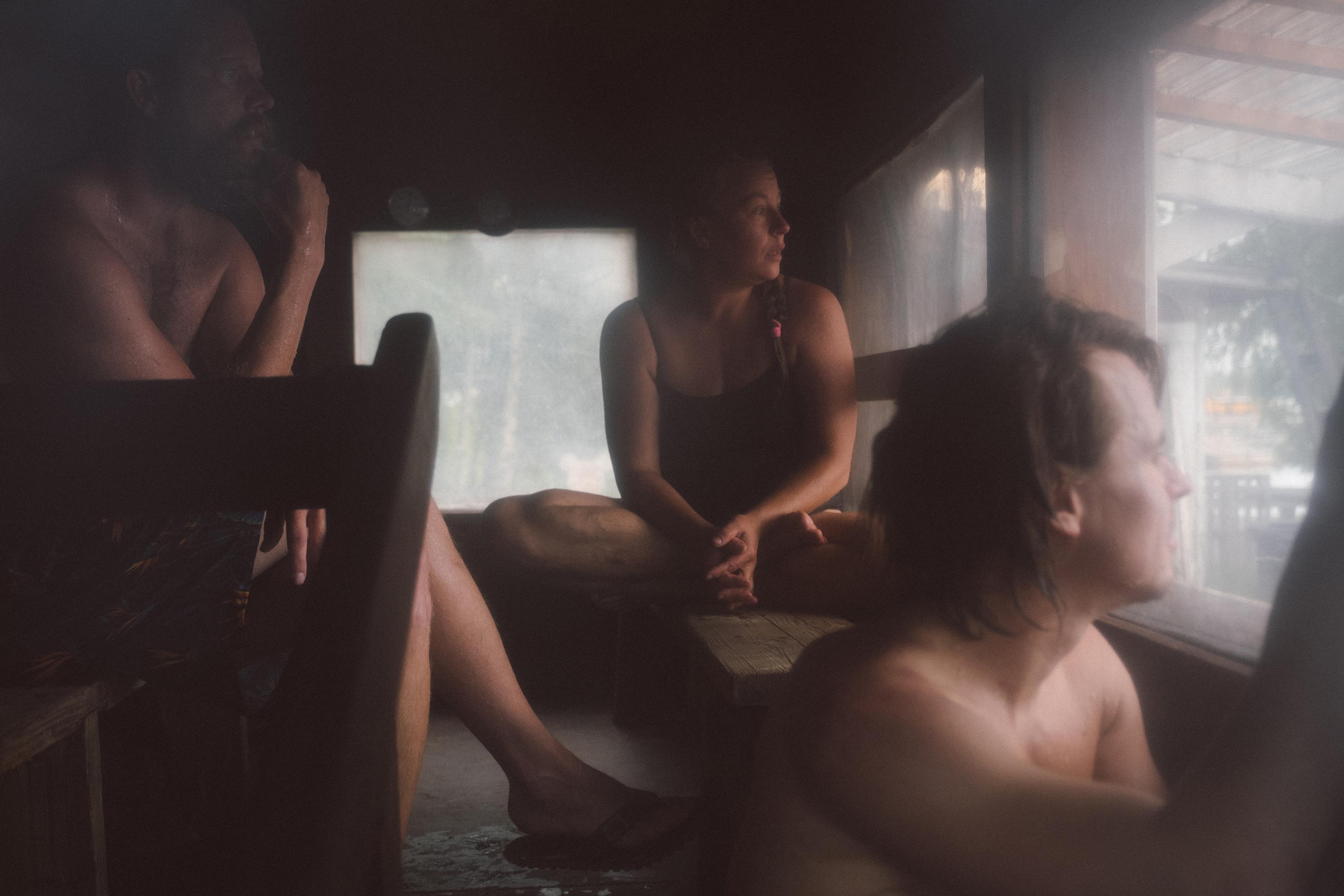 SV: Sompasaunans besökare håller på att värma upp bastun.