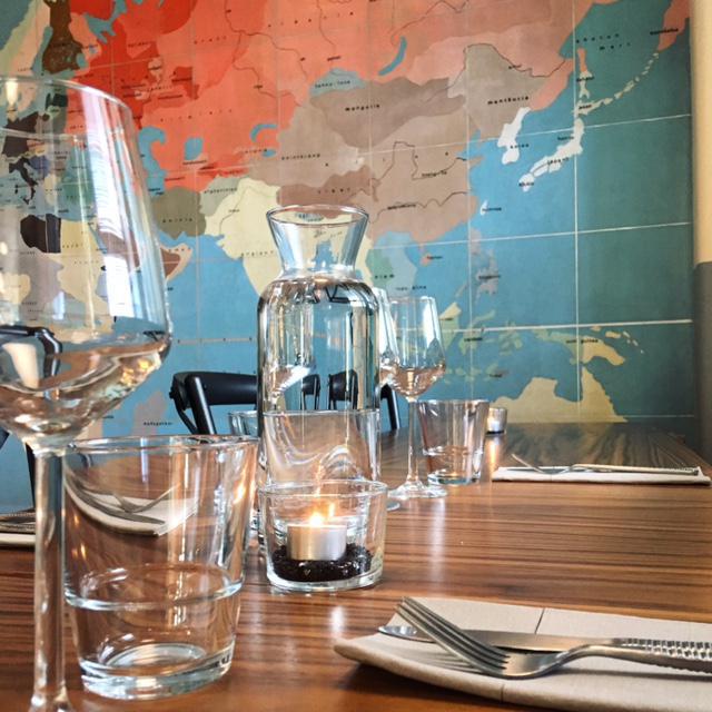 SV: Restaurang Kaarti, fotograferad inifrån. På bordet finns dricksglas, bestick och ett ljus.