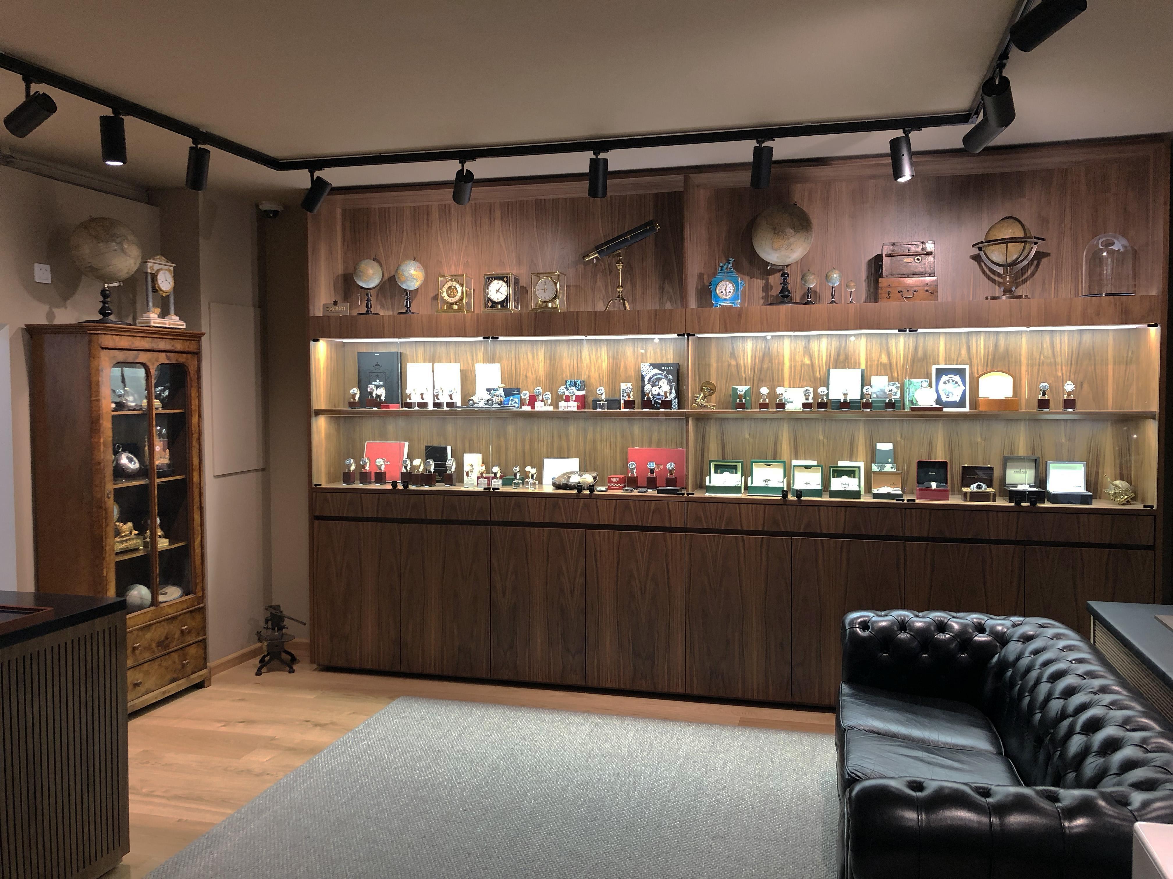 EN: The interior of the vintage watch boutique Longitudi.