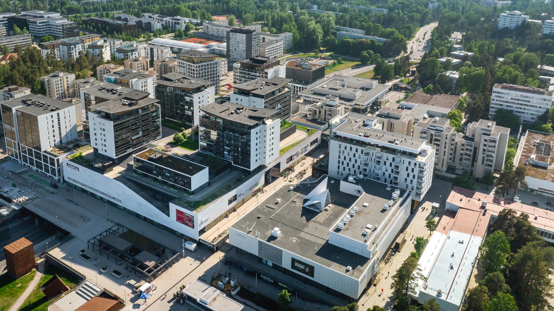 FI: Tapiolan honkien helmoissa AINOAsta on kasvanut sydämeltään suuri kauppakeskus, jonka kattojen alta löydät 100 liikettä.