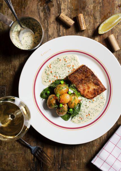 EN: Best ingredients, innovative touch, certainty brought by experience, and classic French cuisine shake hands in a relaxed brasserie atmosphere.