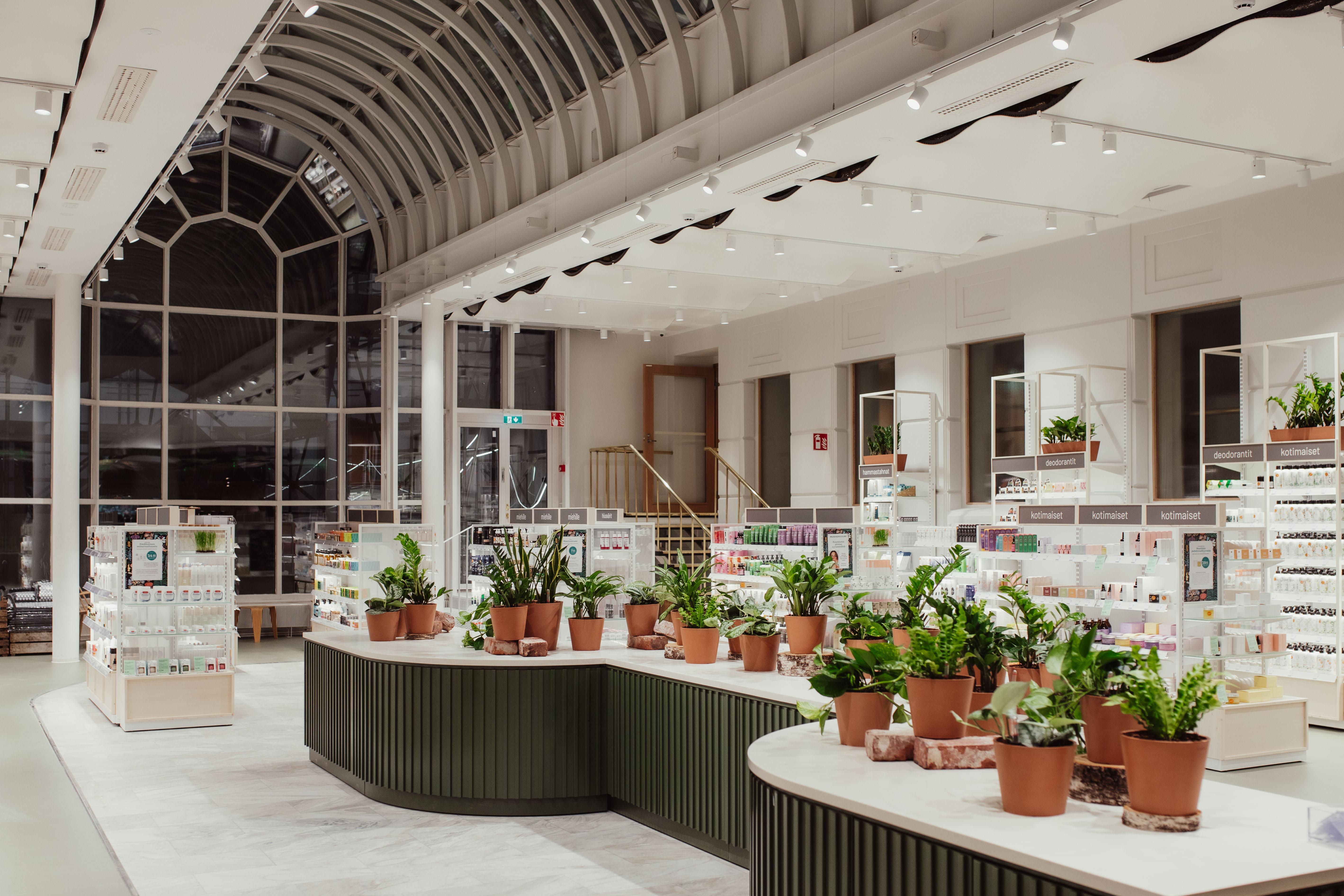 Located on Mannerheimintie, the Ruohonjuuri Mansku Flagship is an architectural landmark and a winner of the "Store of the Year" award. The store is housed in the historic Kalevatalo, a Renaissance-style palace completed in 1913, designed by the renowned architect Armas Lindgren 1914. The 700m2 space features a large dedicated area for natural cosmetics and wellness. The award-winning flagship experience for holistic wellbeing and healthy gifts.