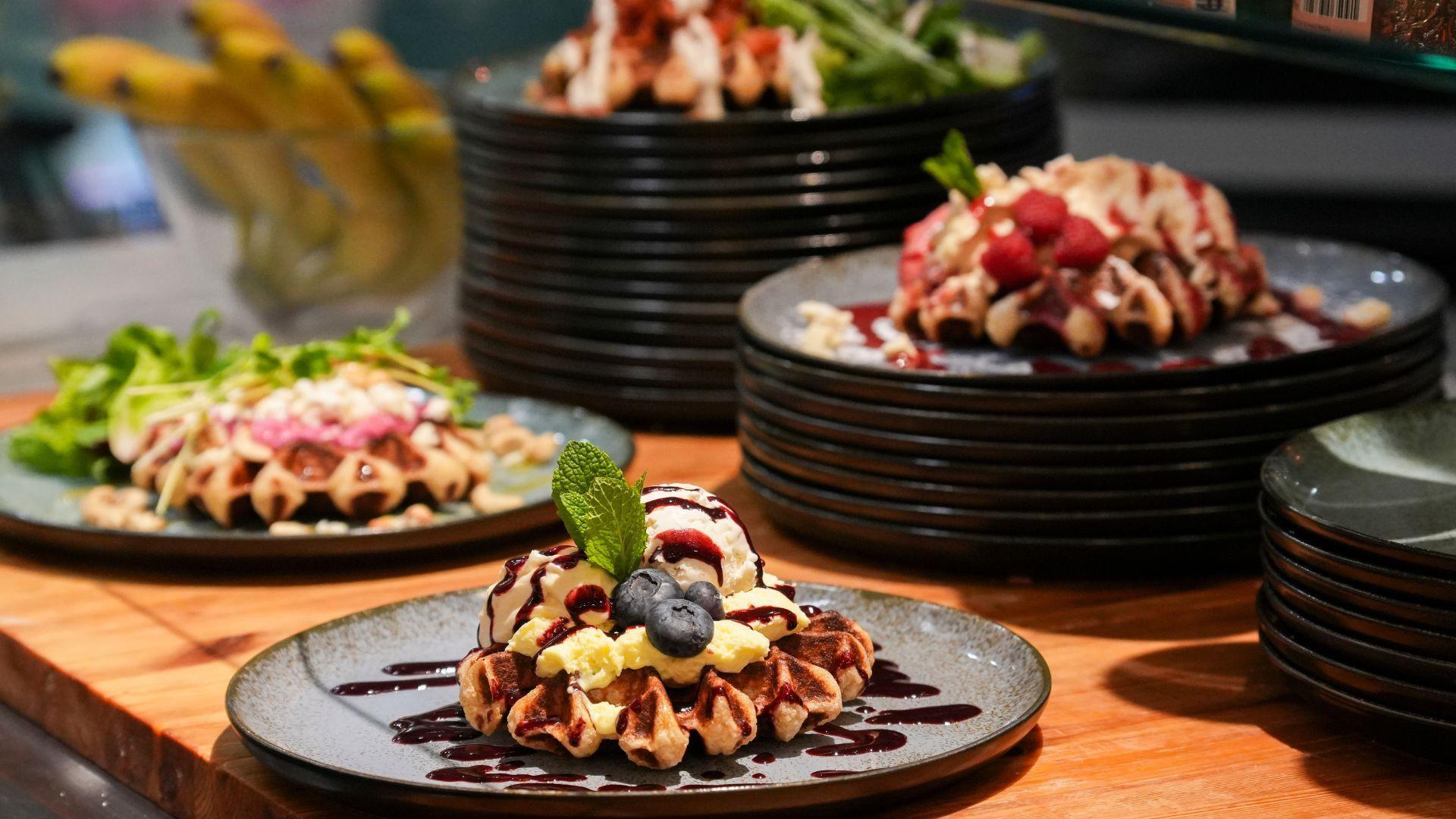 EN: Delicious gourmet waffles in both savory and sweet versions.