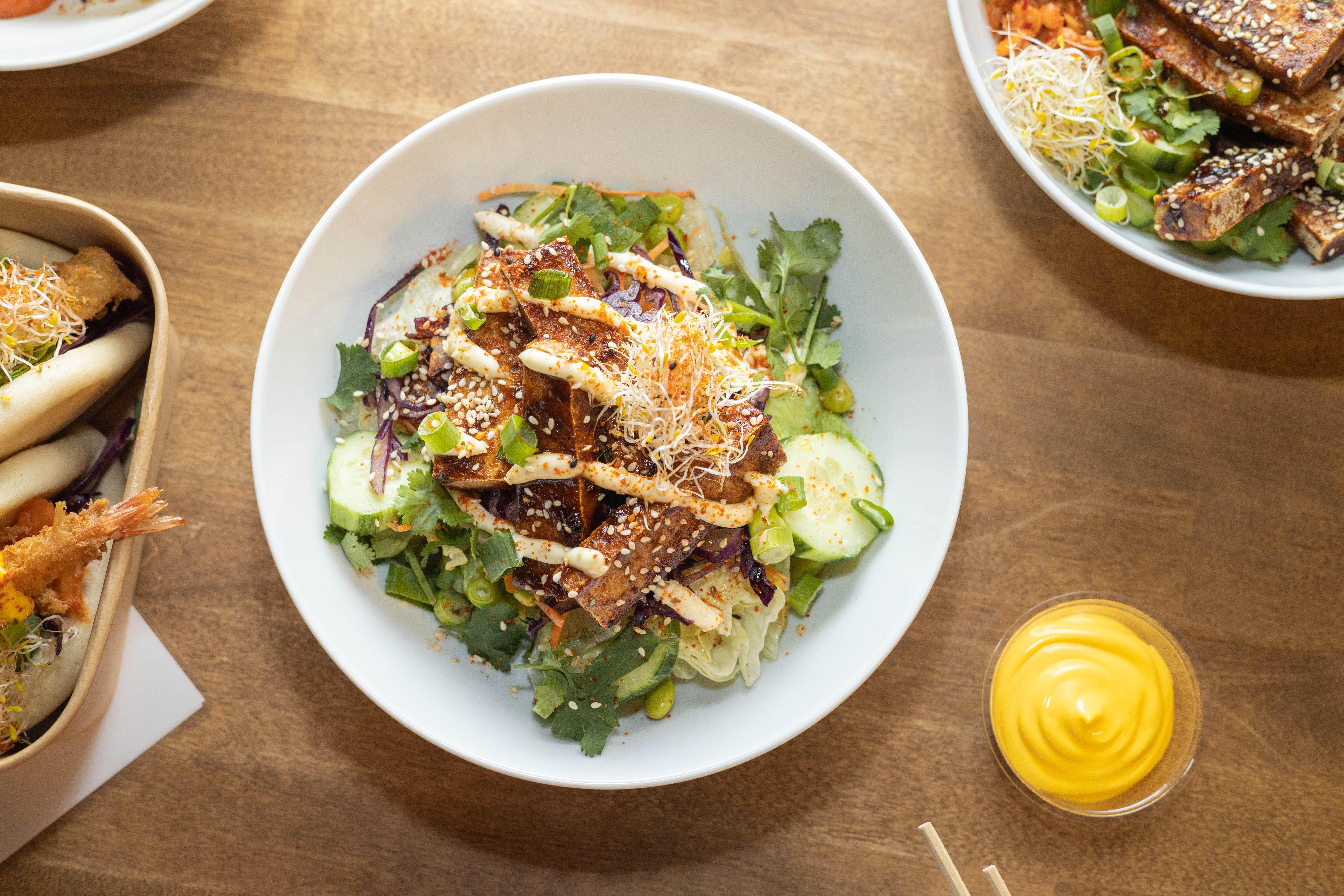 Förutom bibimbap finns mjuka bao bun bröd och färska salladsbowls.
