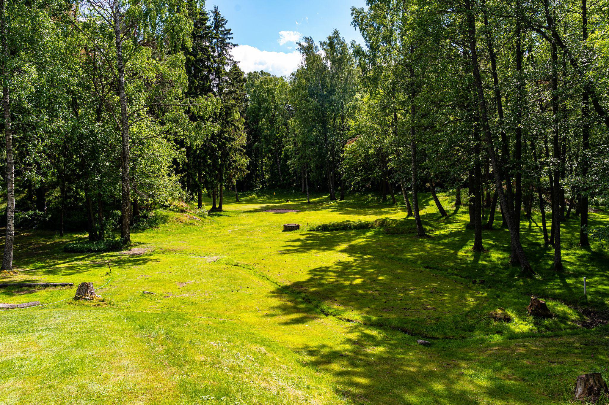 FI: Nurmikenttää ja metsää, golfaaja.