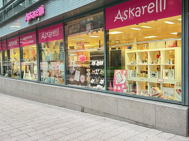 EN: Askarelli is a craft store located right outside of Kamppi. We have craftmaterial for everyday use and parties.