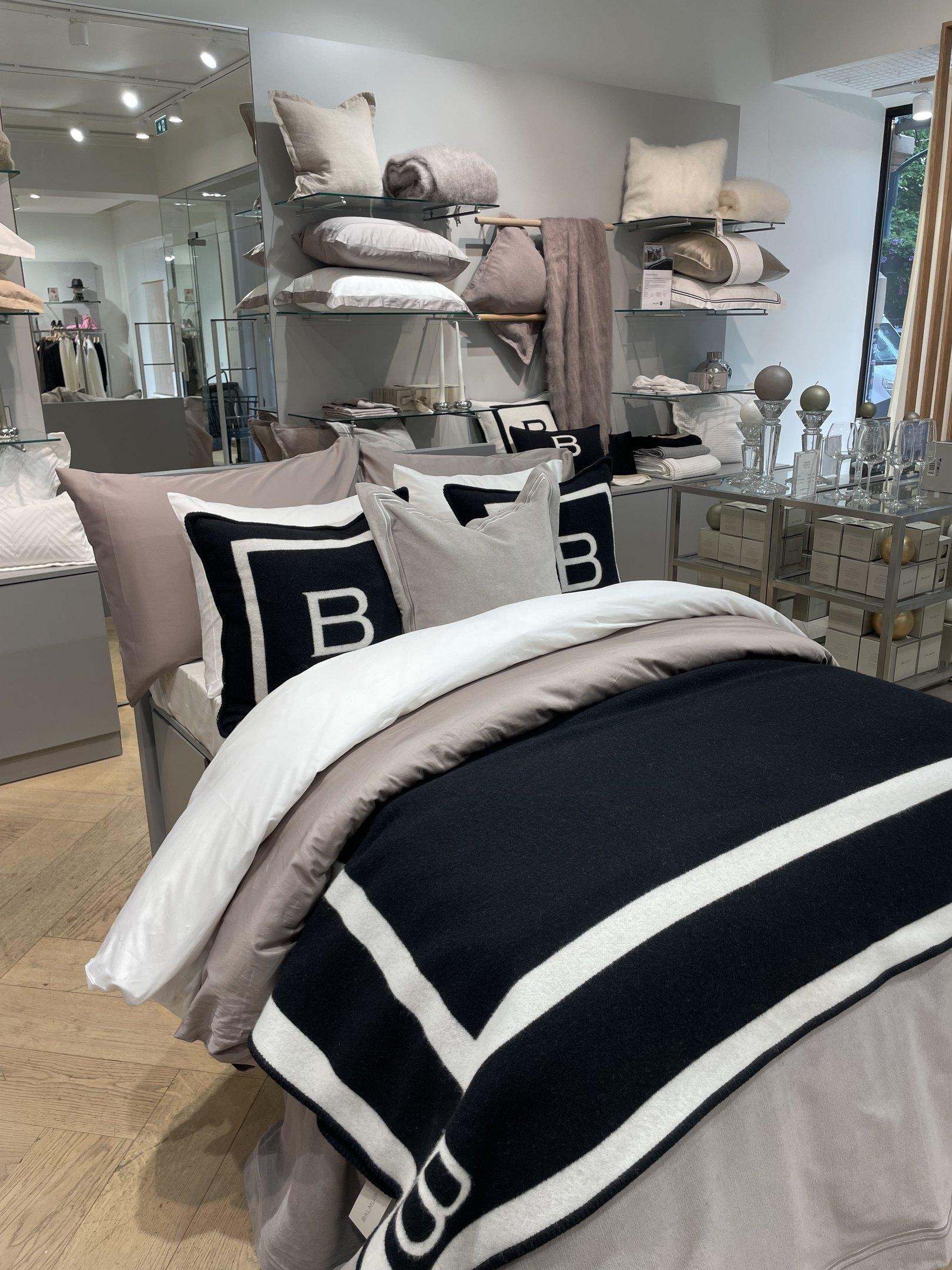 EN: Balmuir Brand Store, photographed from the inside. On the photo, a bed can be seen.
